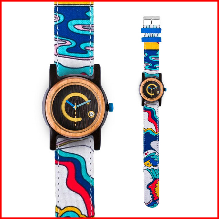 Woodka Mini New Wave Sonokeling Wave Blue Canvas Strap Jam Tangan