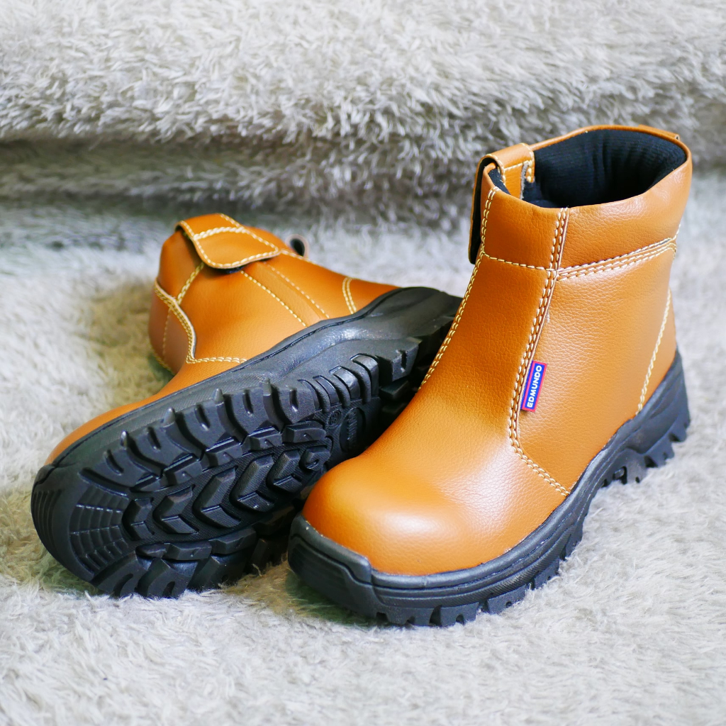 Sepatu Safety Pria Sepatu Kerja Pria Edmundo Sepatu Safety Pria Semi Boot Resleting Tan Ujung Besi Sol Karet Anti Selip