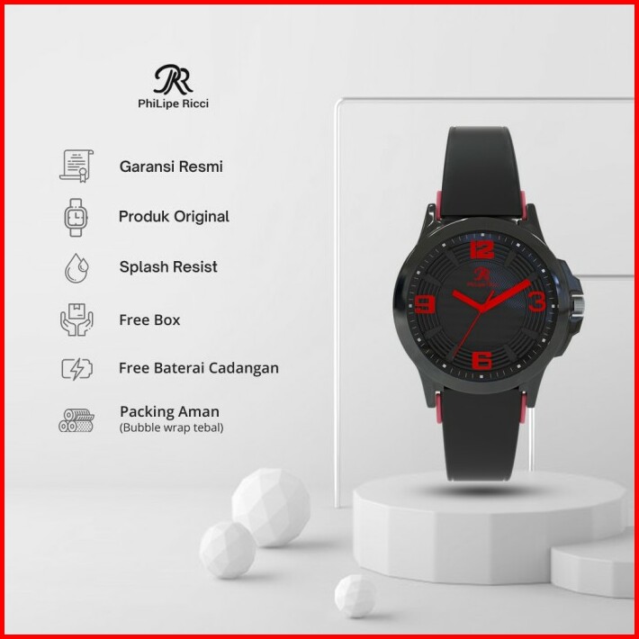 Philipe Ricci Jam Tangan Pria Karet Quartz Terbaru Pml3 Free Box