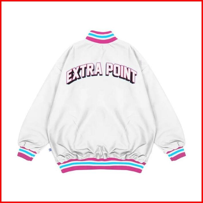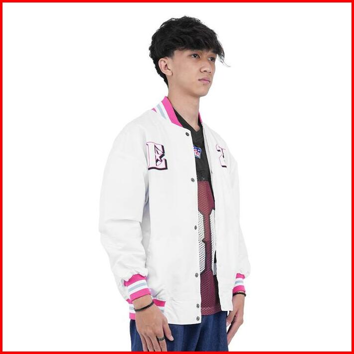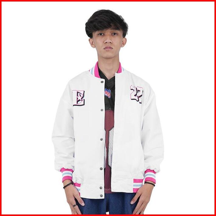 Rzq Active Jaket Series Extra Point 22 Putih Baseball Bomber Streetwear Oversize Boxy Fit Retro Vintage Music Musik Rugb