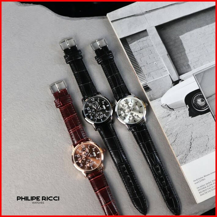Philipe Ricci Jam Tangan Pria Kulit Terbaru Analog Quartz 4234