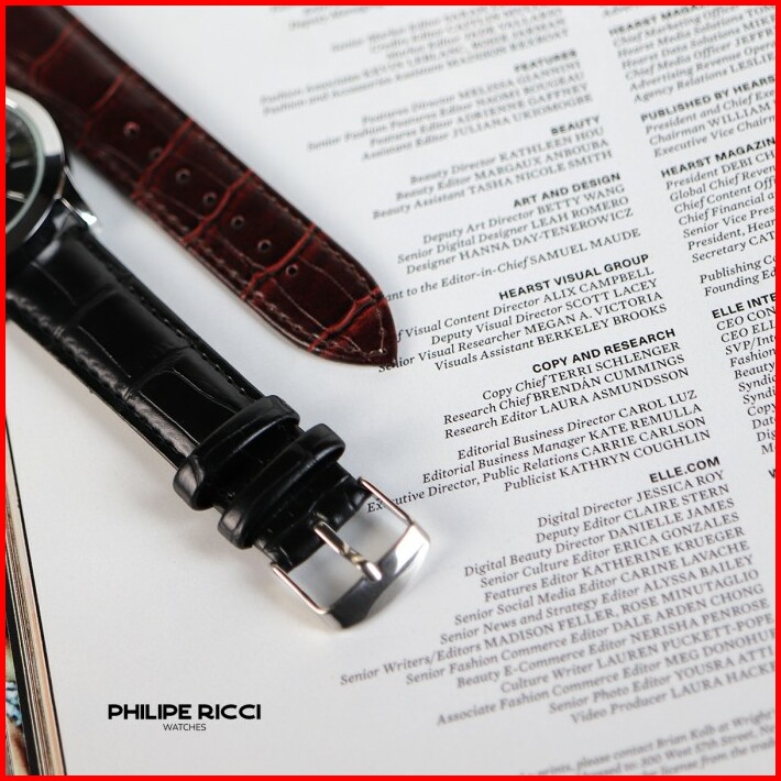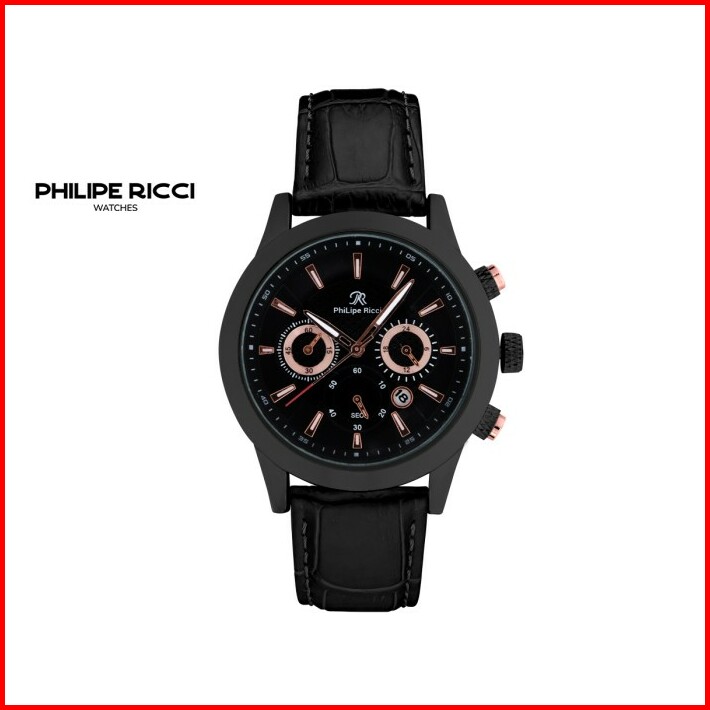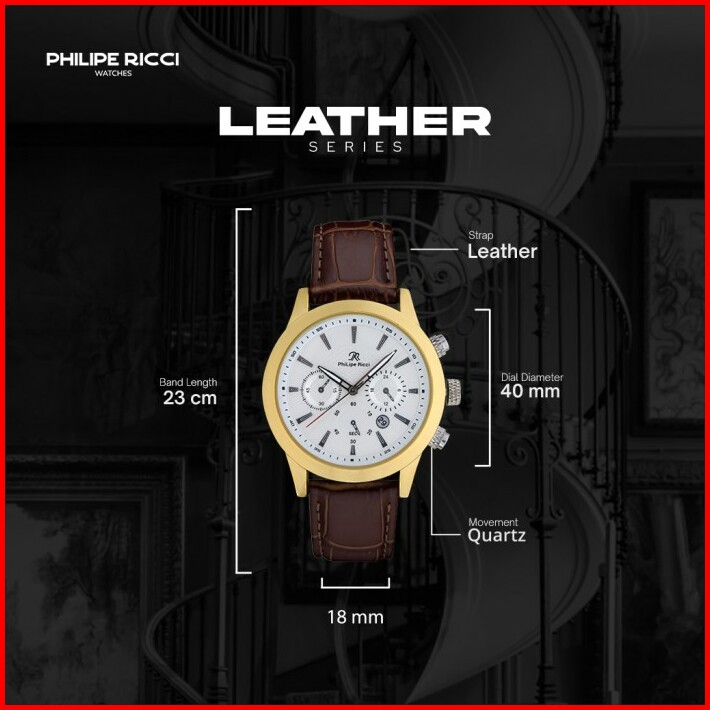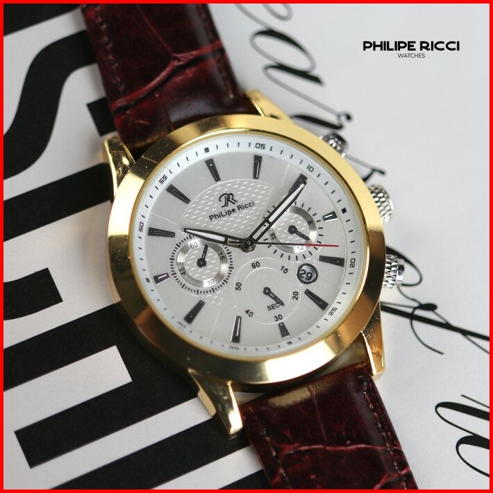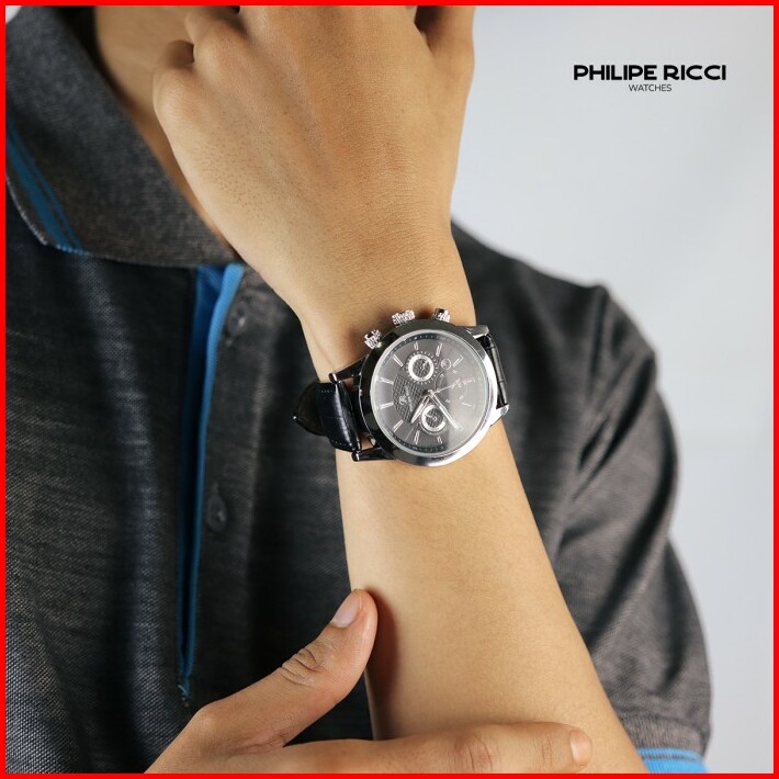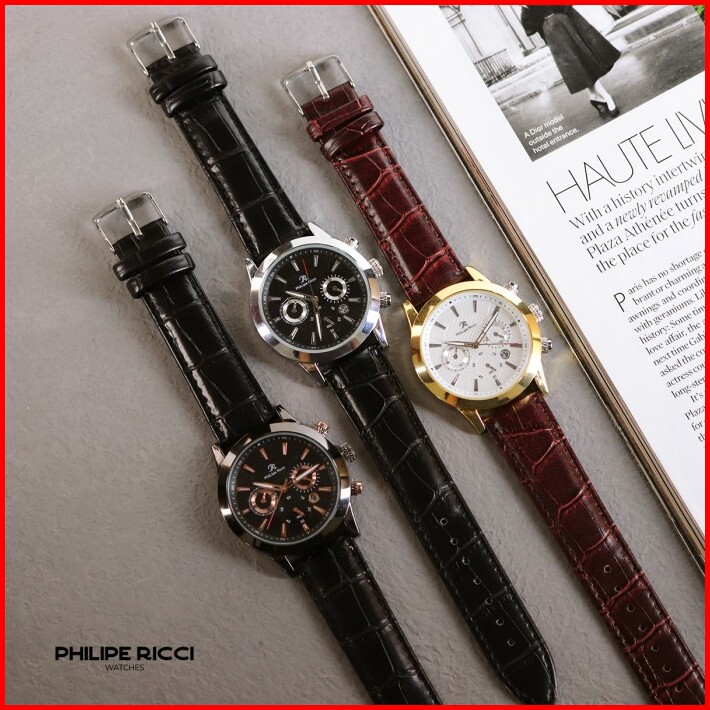 Philipe Ricci Jam Tangan Pria Kulit Analog Gaya Modern 4235