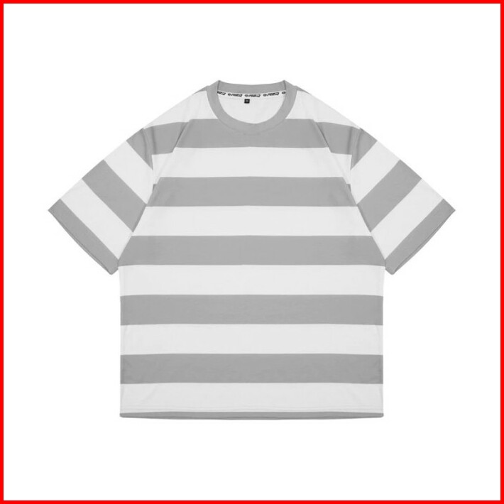 Rzq Active T-shirt Basic Stripe Oversize Garis-garis White Grey