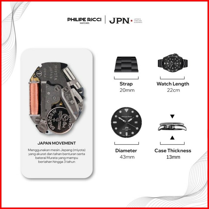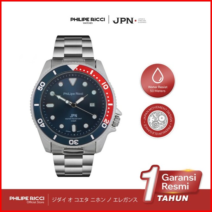 Philipe Ricci Jpn Jam Tangan Pria Anti Air Rantai Stainless Steel Original Terbaru 5090 Elegan Keren