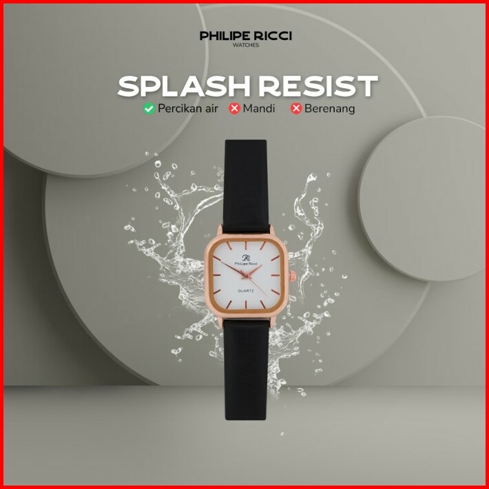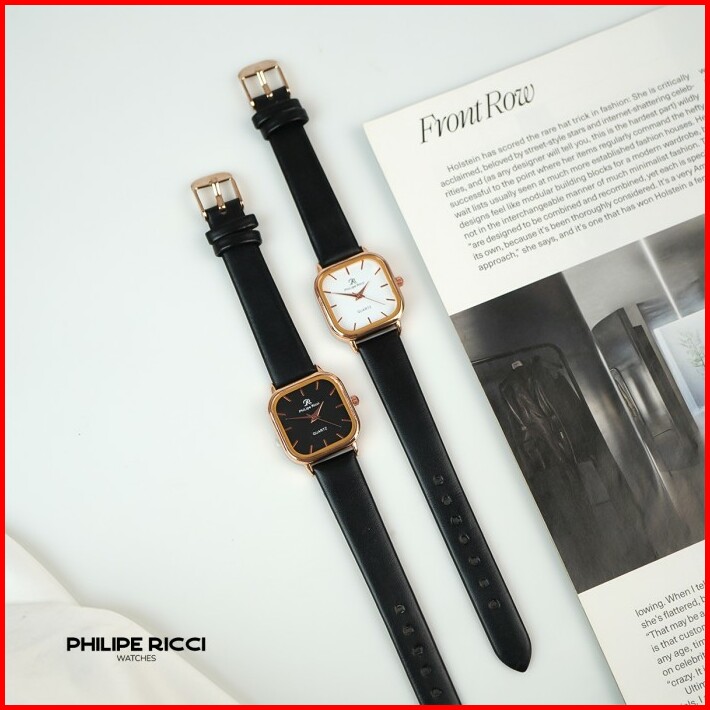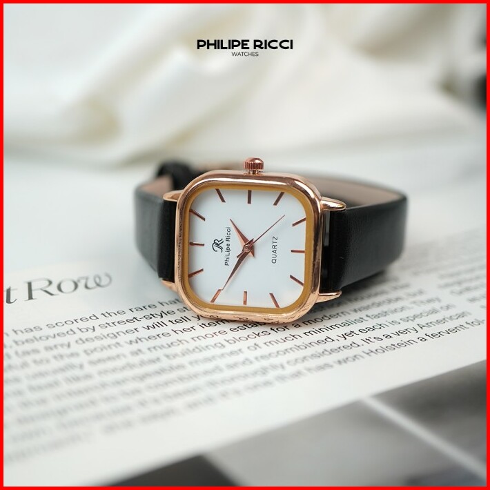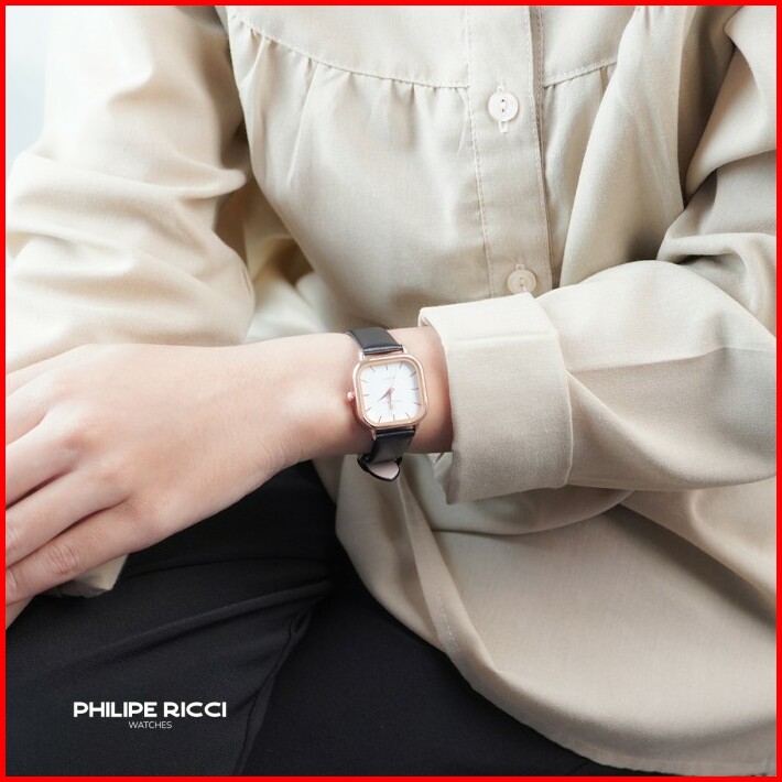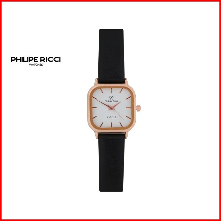 Philipe Ricci Jam Tangan Wanita Kulit Kecil Aesthetic Kotak Original 7487 Jam Cewek Mini Rose Hitam