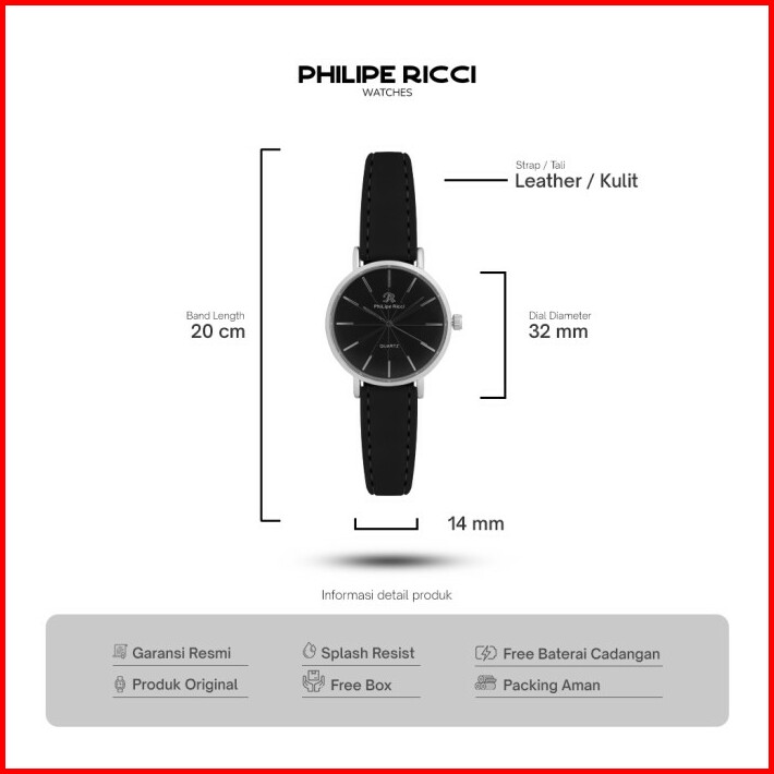 Philipe Ricci Jam Tangan Wanita Kulit Hitam Kecil Gaya Trendy Original 8686g Fashion Women Watches