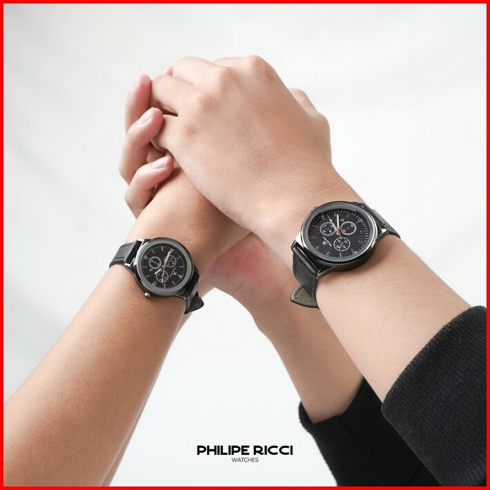 Philipe Ricci Jam Tangan Couple Pria Wanita Kulit Pasangan Stylish Terbaru Original 9115 Free Box