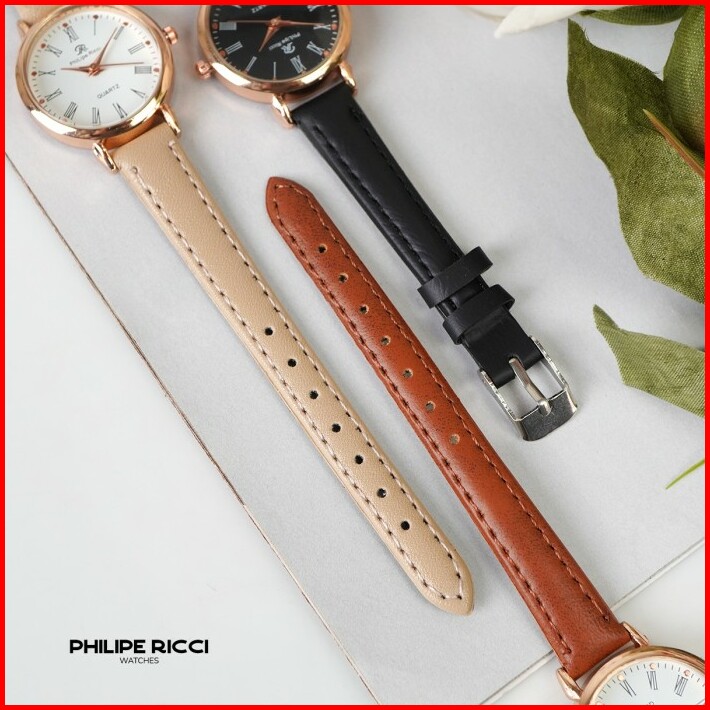 Philipe Ricci Jam Tangan Wanita Kulit Hitam Bulat Kecil Terbaru Original 6989 Women Watches Free Box