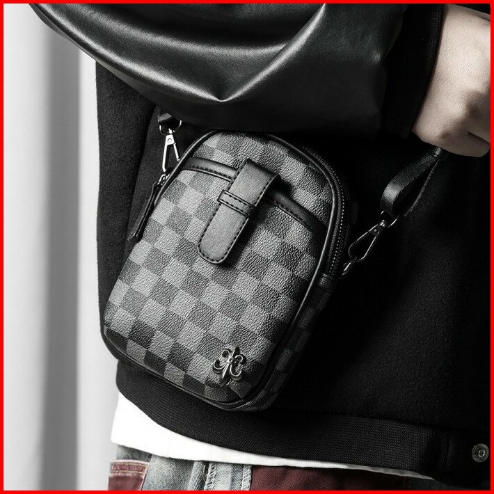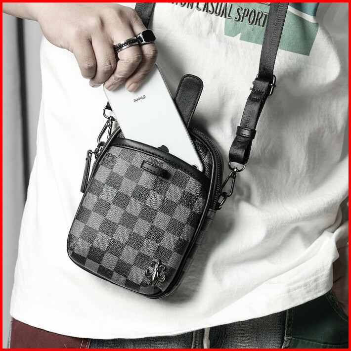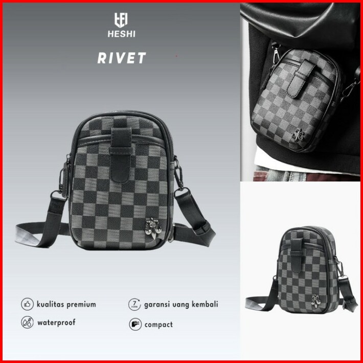 Tas Selempang Bahu Kecil Pria Wanita Waterproof Plaid- Rivet Sl28