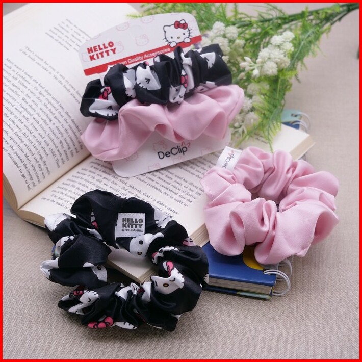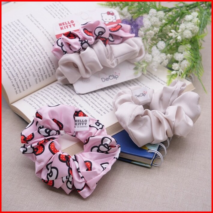Declip Scrunchie Satin Set Motif Hello Kitty Ribbon