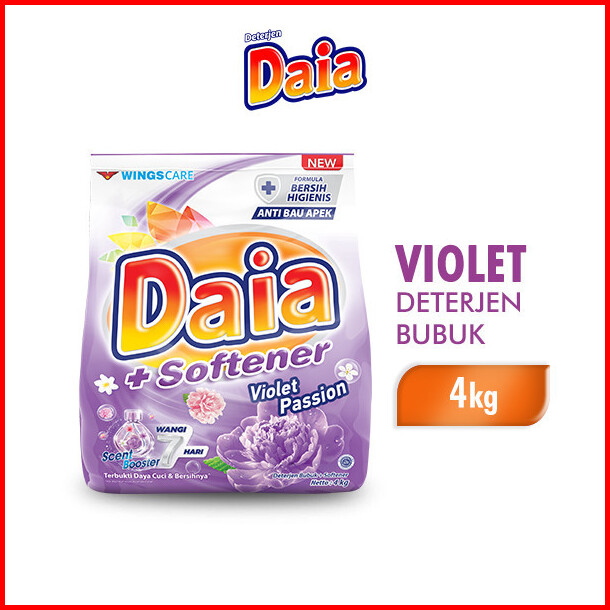 Daia Deterjen Bubuk Softener Wangi Violet Kemasan Jumbo 4 Kg Detergen Pakaian