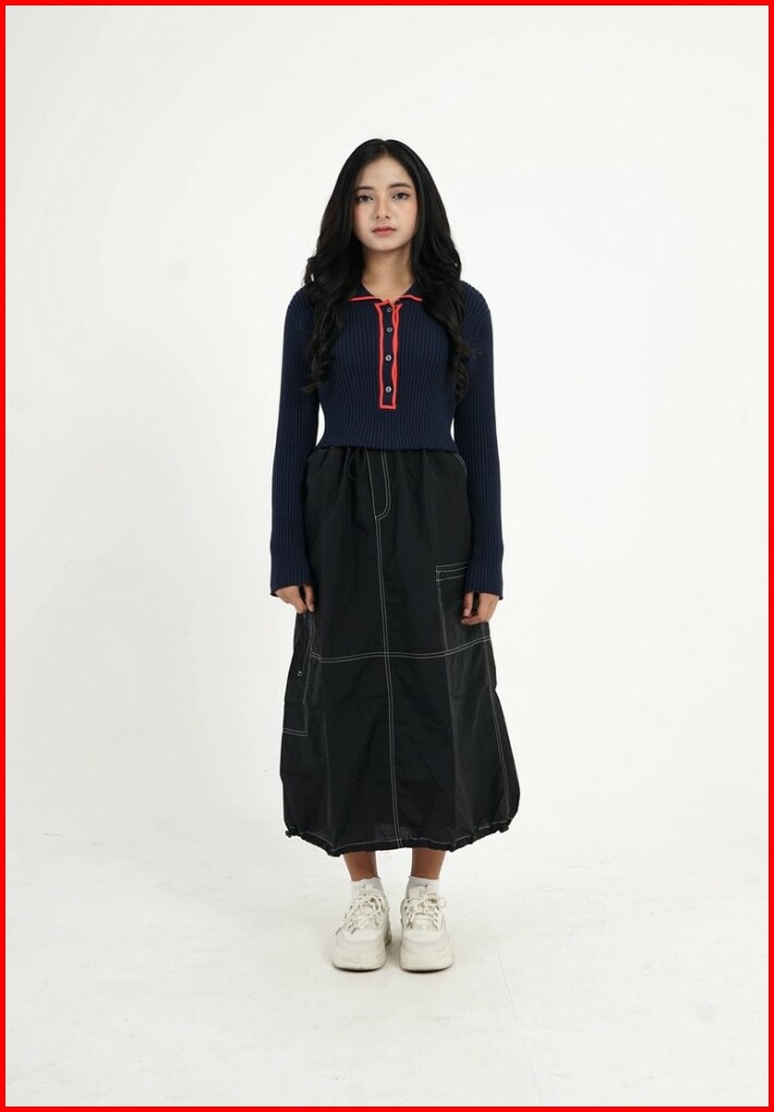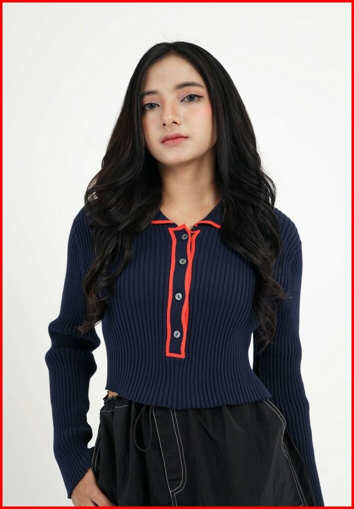 Greenlight Rajut Wanita Crop Top Lengan Panjang Katun Yumiko C021124