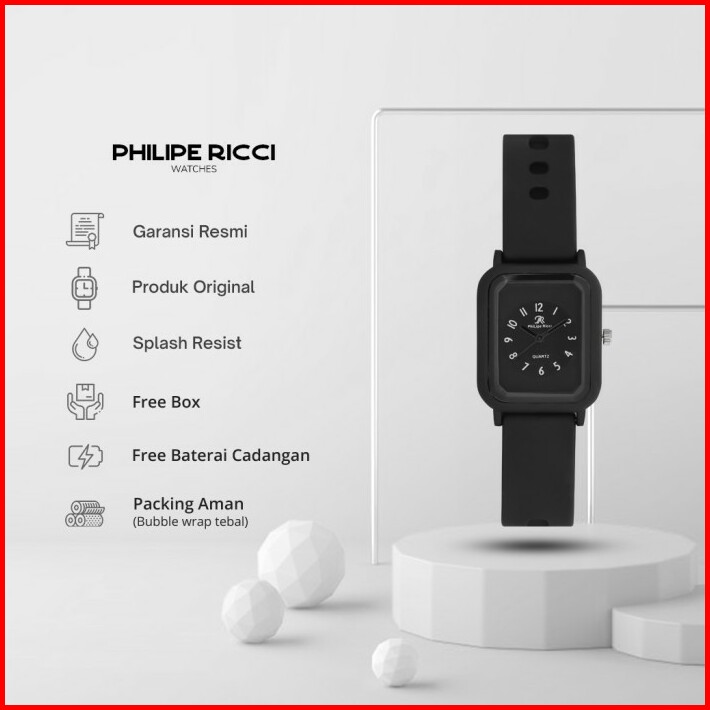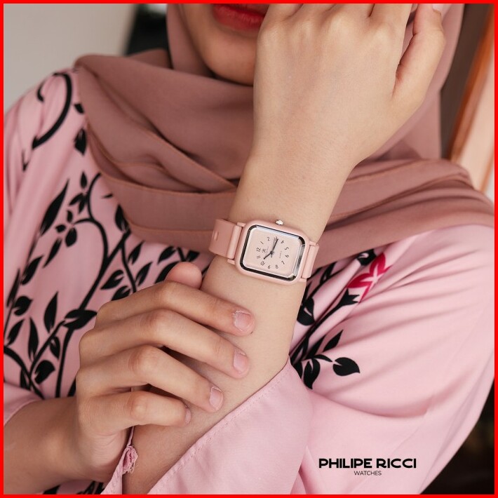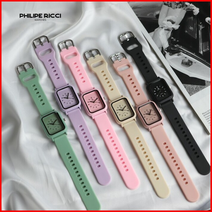 Philipe Ricci Jam Tangan Wanita Strap Karet Dial Kotak Terbaru 6245