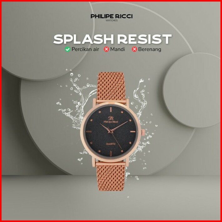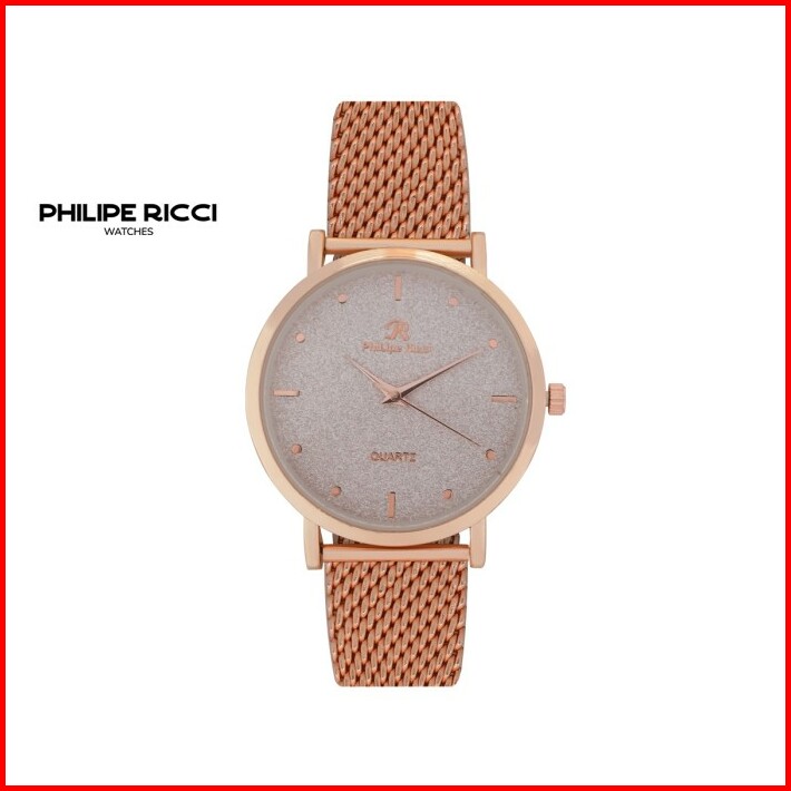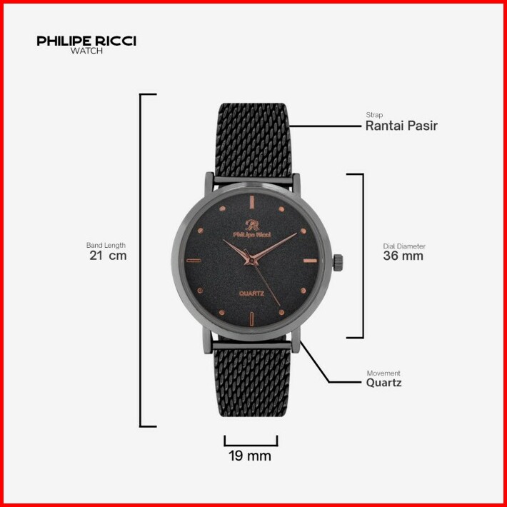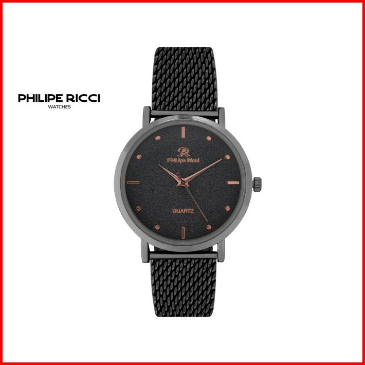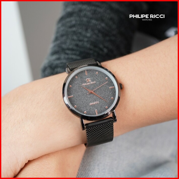 Philipe Ricci Jam Tangan Wanita Rantai Pasir Bulat Tipis Desain Kekinian 7488 Jam Cewek Rose Hitam