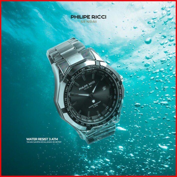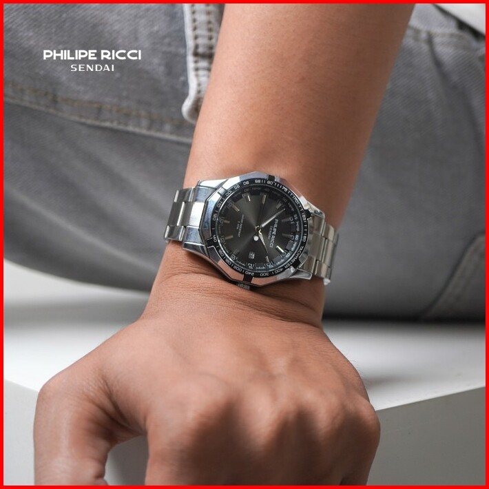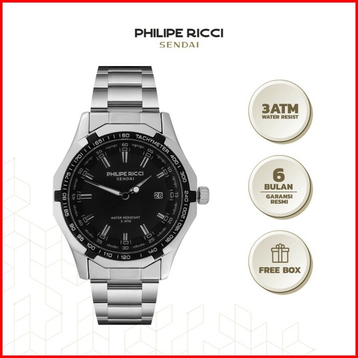 Philipe Ricci Sendai Jam Tangan Pria Rantai Besi Water Resist 100 Ori Keren Modern 6342 Free Box