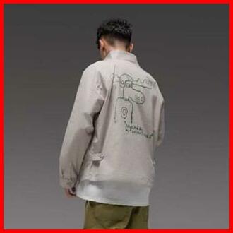 Three2nd X Basquiat Jaket Casual Pria Kerah Harrington Jacket Open Collar 030823