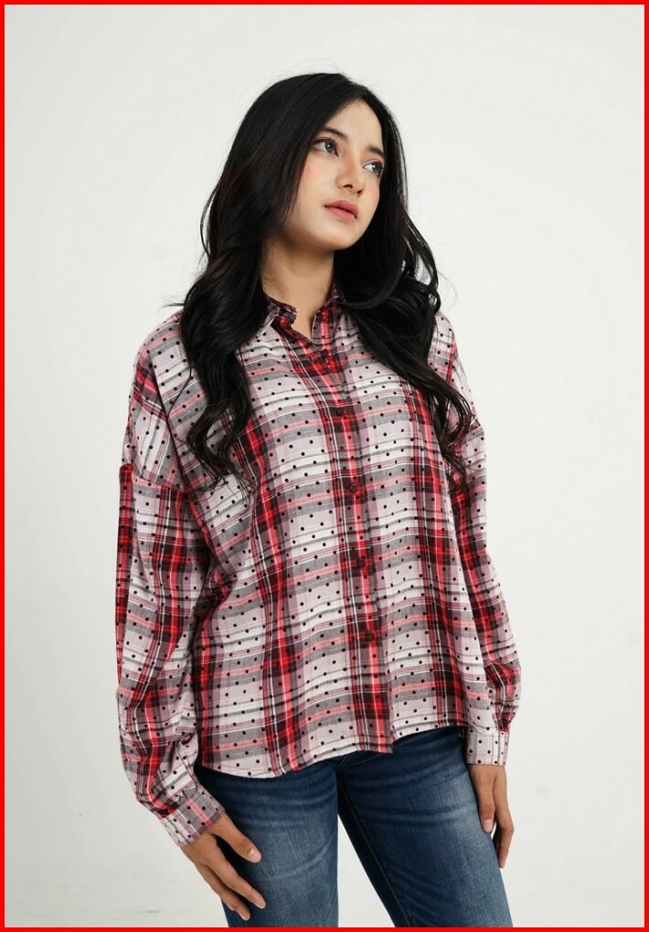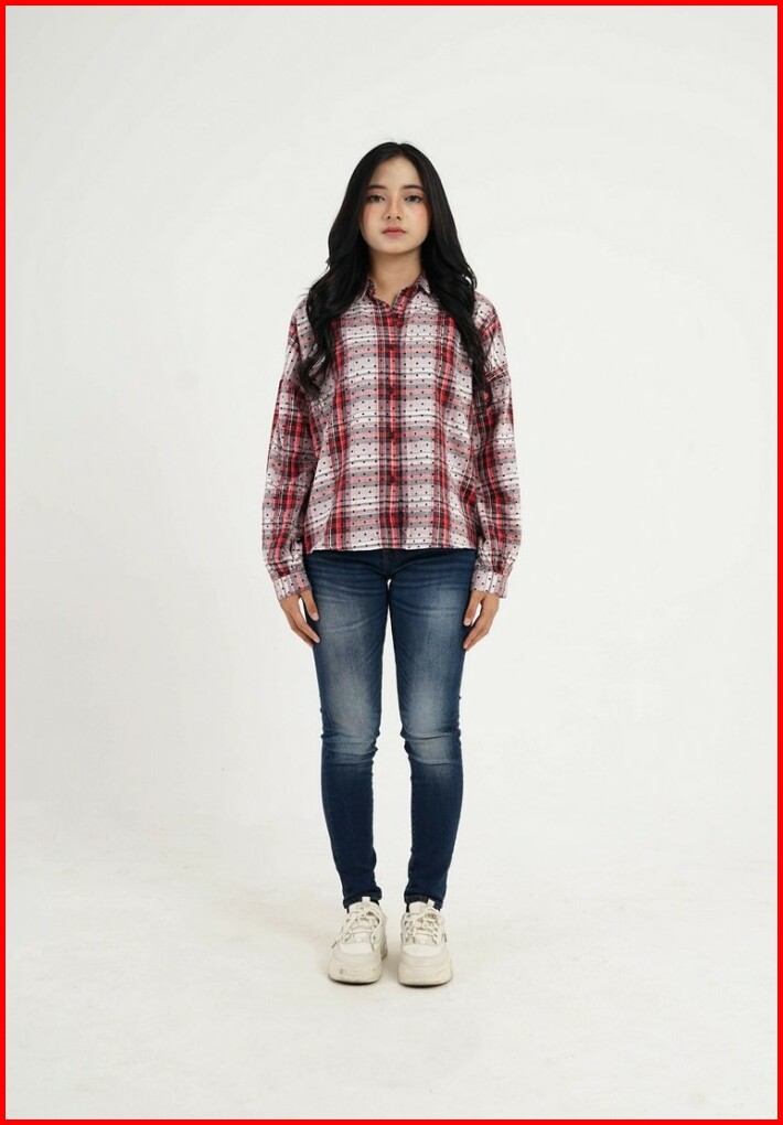 Greenlight Kemeja Wanita Kotak-kotak Lengan Panjang Plaid Seira C01112