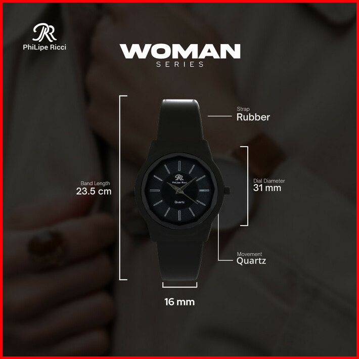Philipe Ricci Jam Tangan Wanita Analog Karet Quartz Hitam W6557
