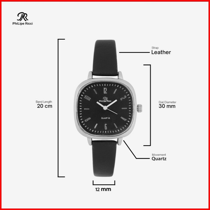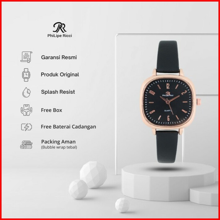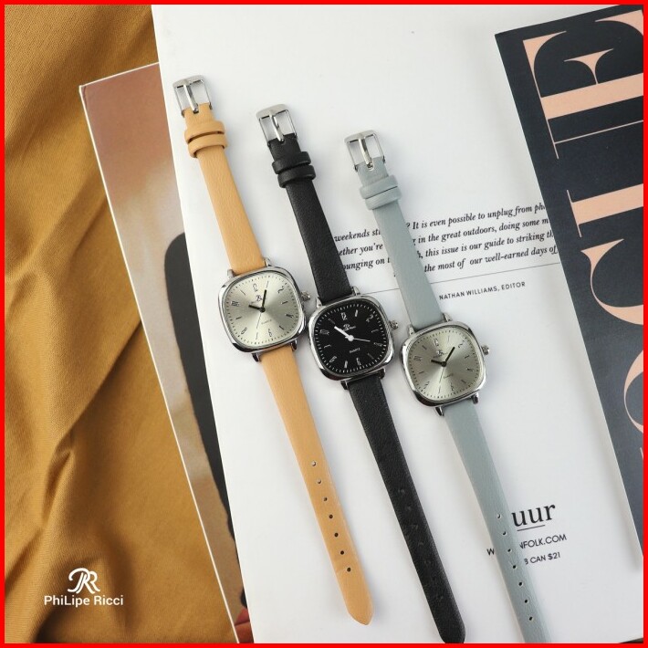 Philipe Ricci Jam Tangan Wanita Kotak Strap Tali Kulit Kecil 4232