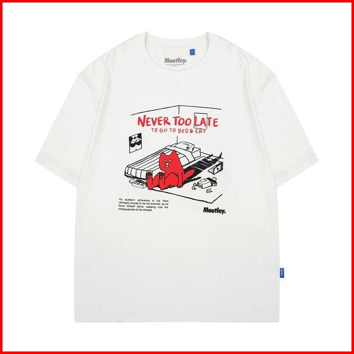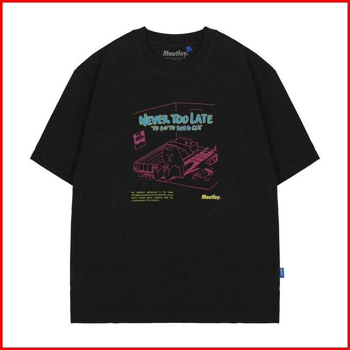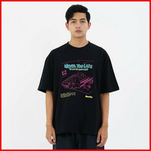 Moutley Kaos Pria Lengan Pendek Oversized Fit Katun Never Too Late Ol-140125