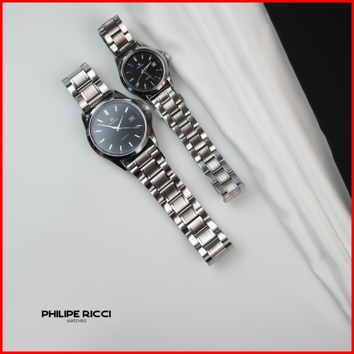 Philipe Ricci Jam Tangan Couple Rantai Besi Pria Wanita Terbaru Elegan 7501 Free Box