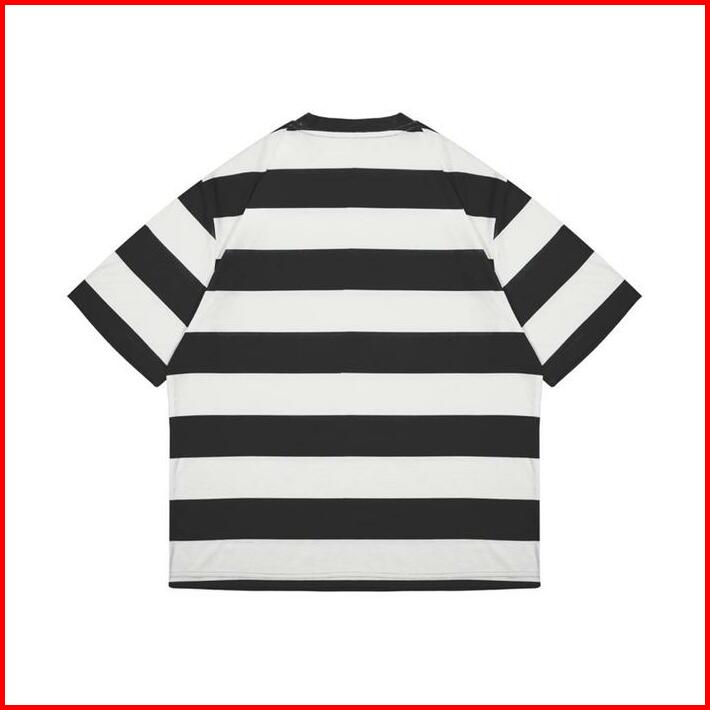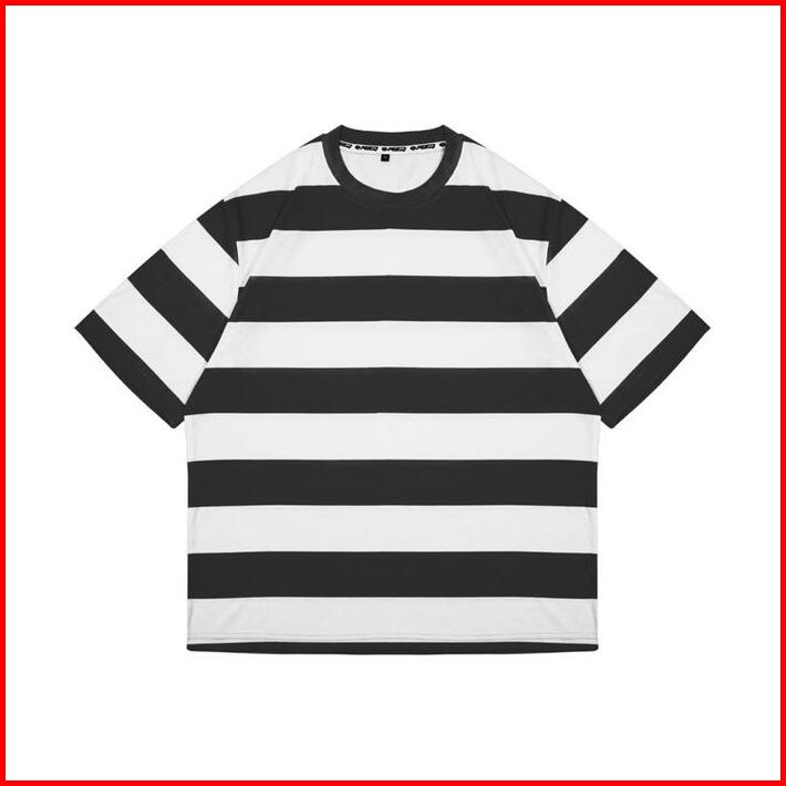 Rzq Active T-shirt Basic Stripe Oversize Garis-garis Black White Kerah Panjang