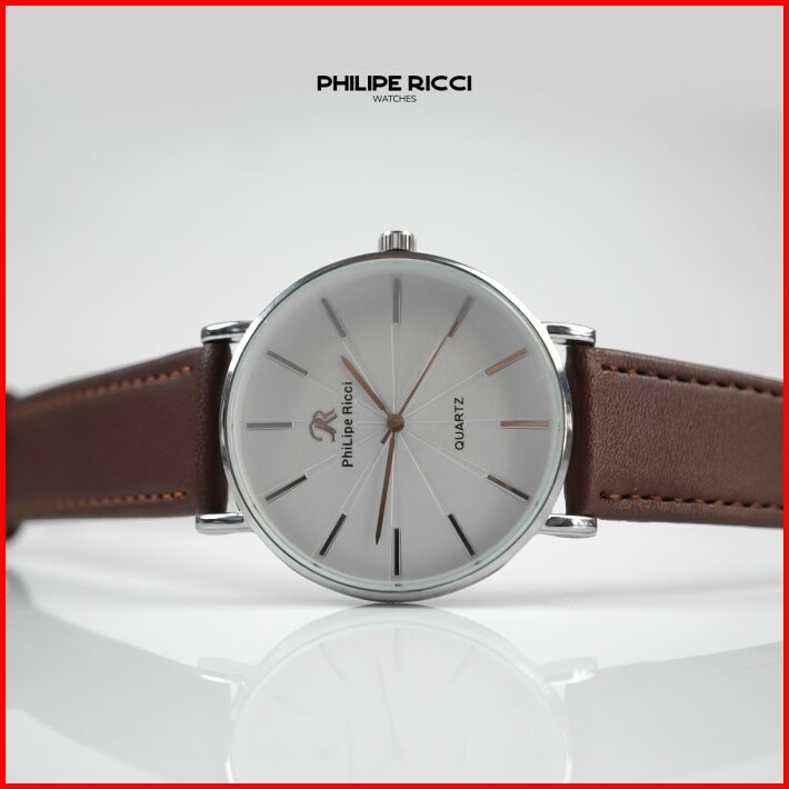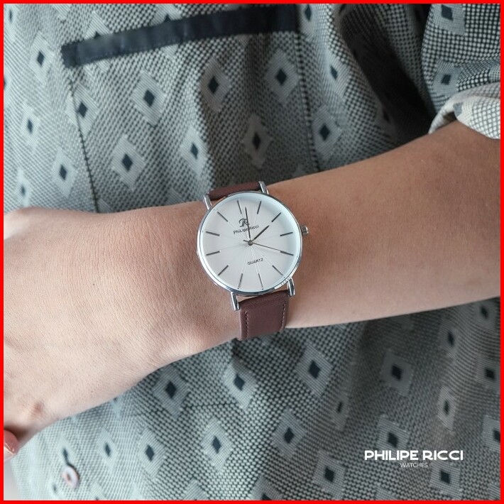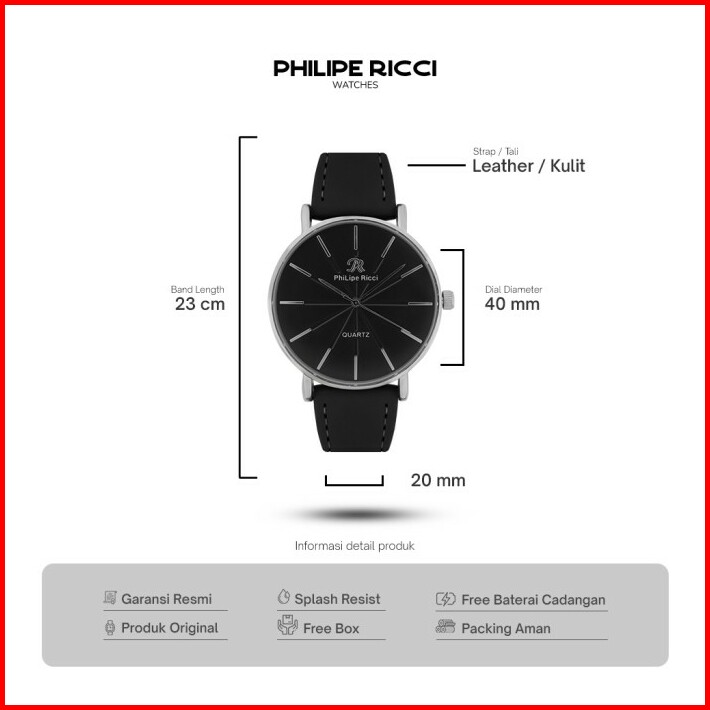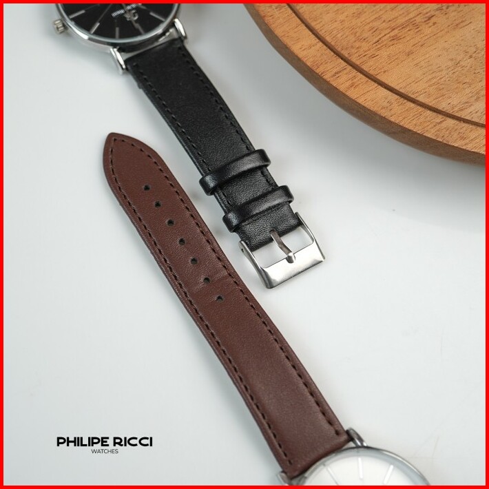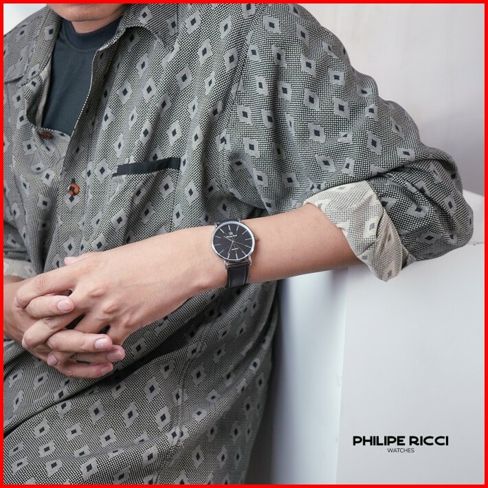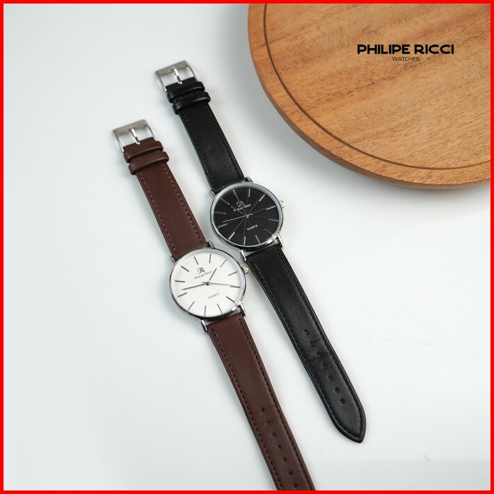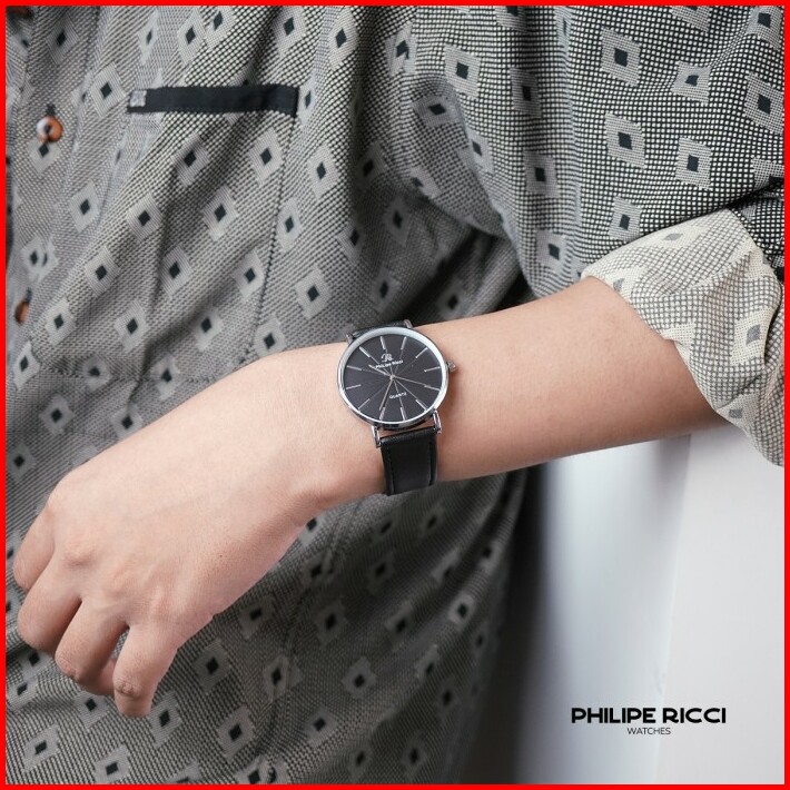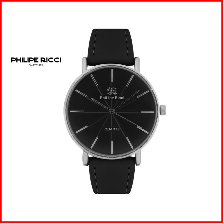 Philipe Ricci Jam Tangan Pria Kulit Leather Hitam Tipis Simple Keren Analog Quartz 8686g Box Hitam