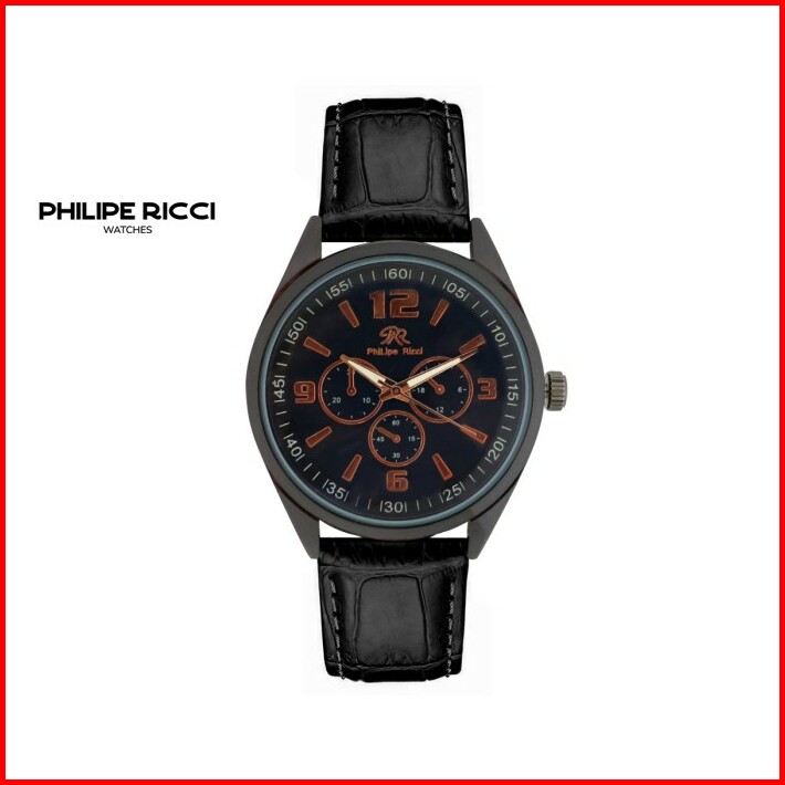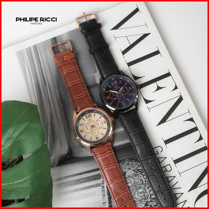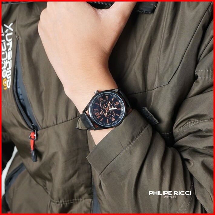 Philipe Ricci Jam Tangan Pria Kulit Dial Bulat Stylish Terbaru Original 100 Prm2 Free Box Hitam