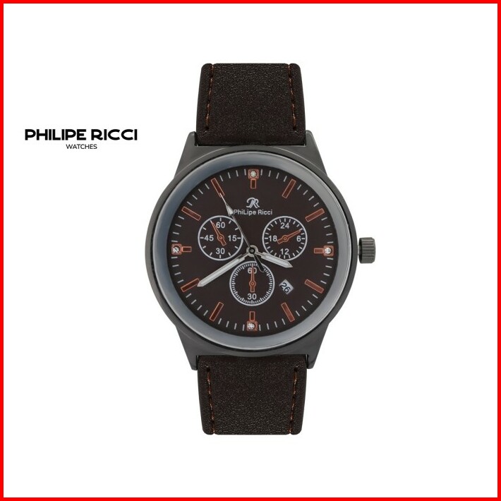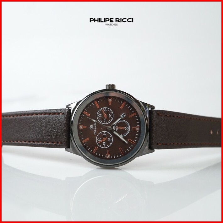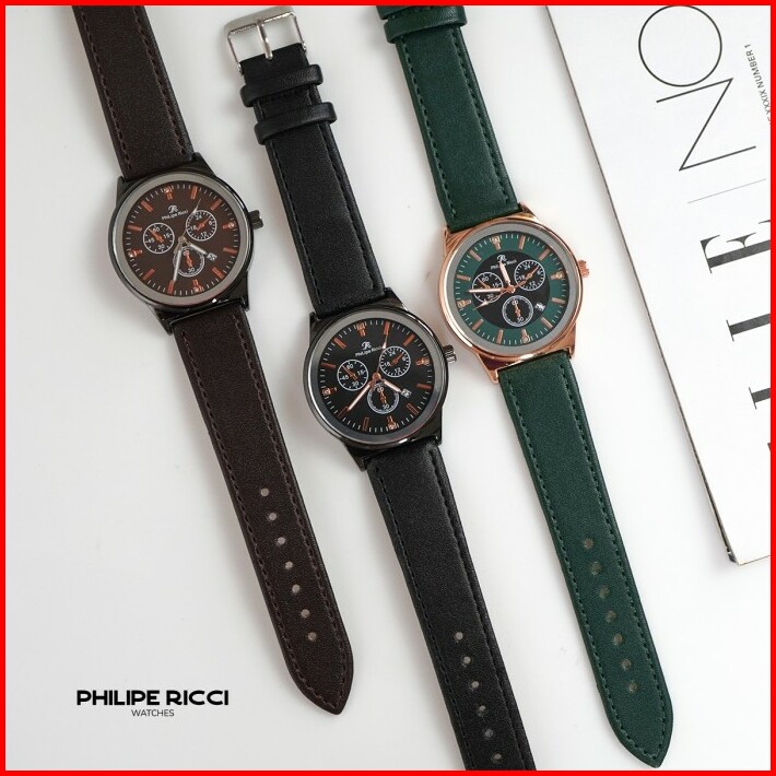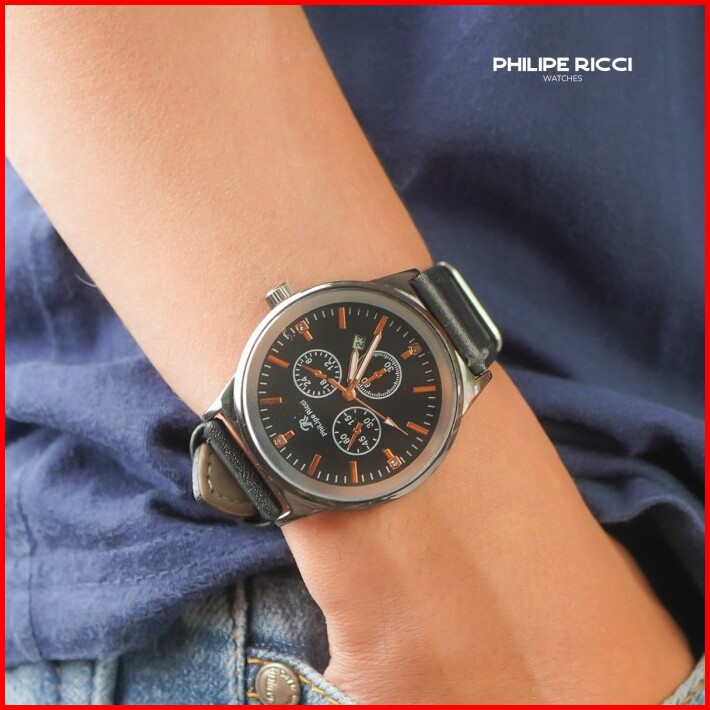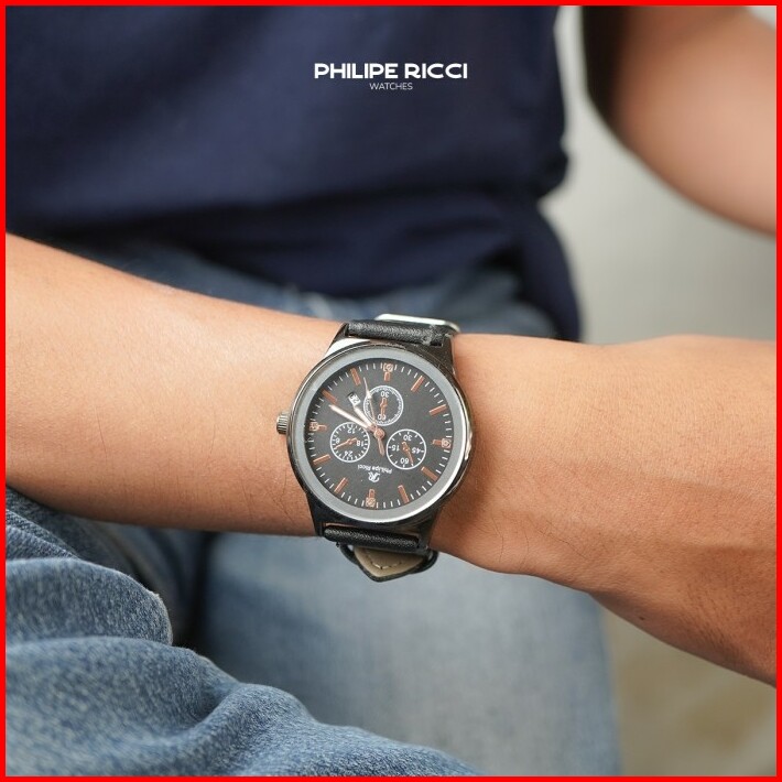 Philipe Ricci Jam Tangan Pria Kulit Hitam Stylish Modern Original 9115l Men Watches Free Baterai