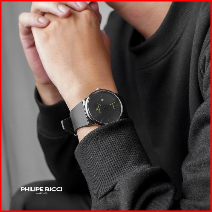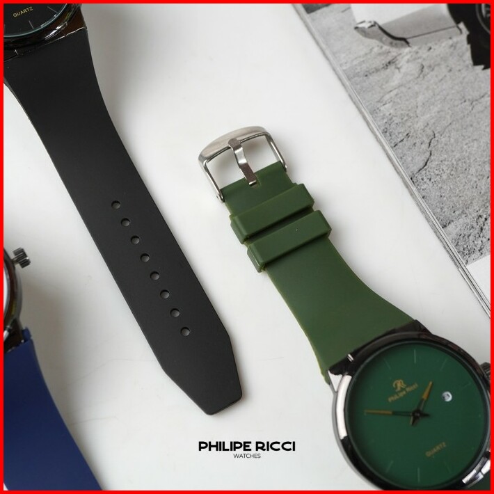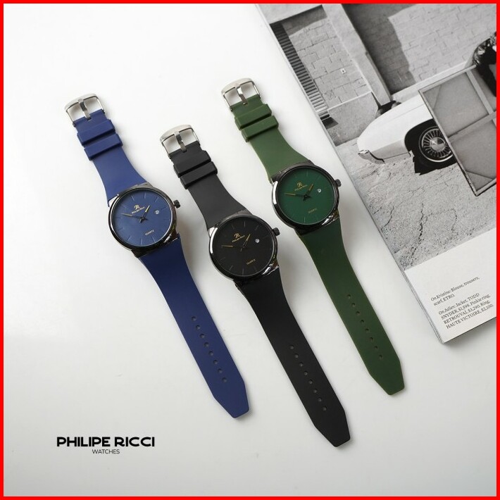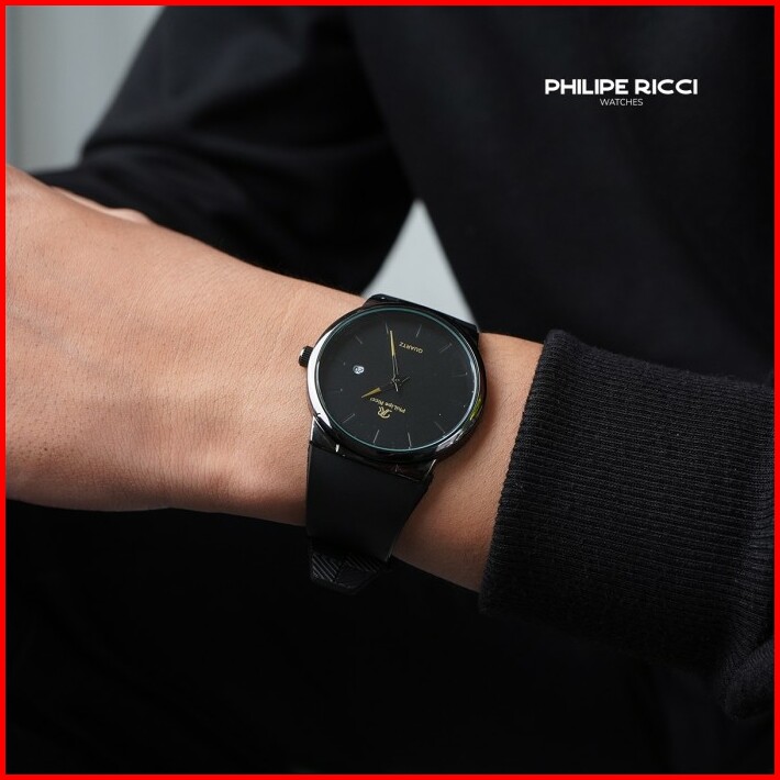 Philipe Ricci Jam Tangan Pria Karet Hitam Simple Terbaru Ori Tipis Keren 7553 Men Watches Free Box