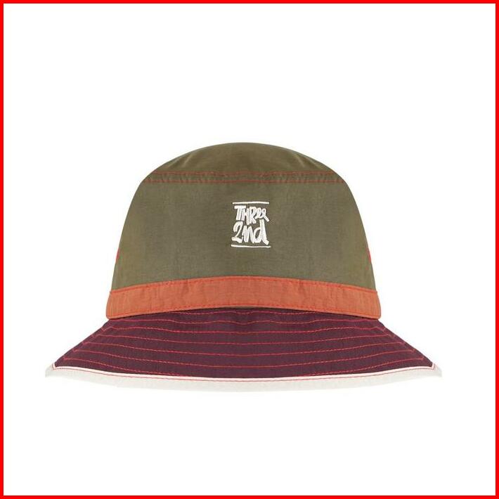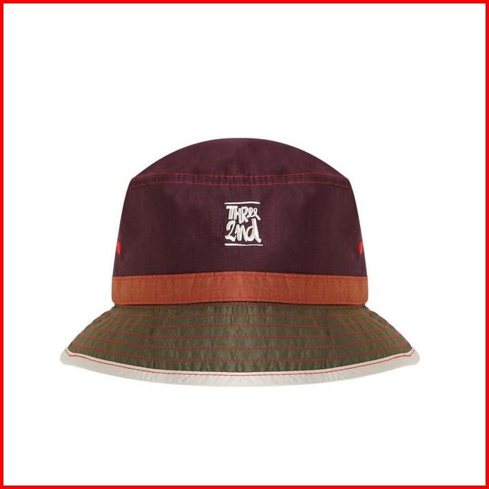Three2nd Bucket Hat Logo Army Maroon C010124