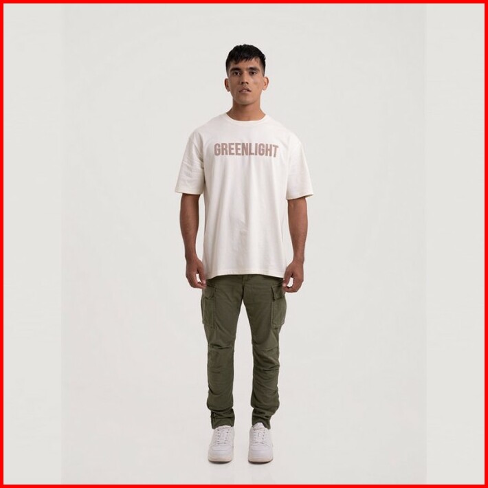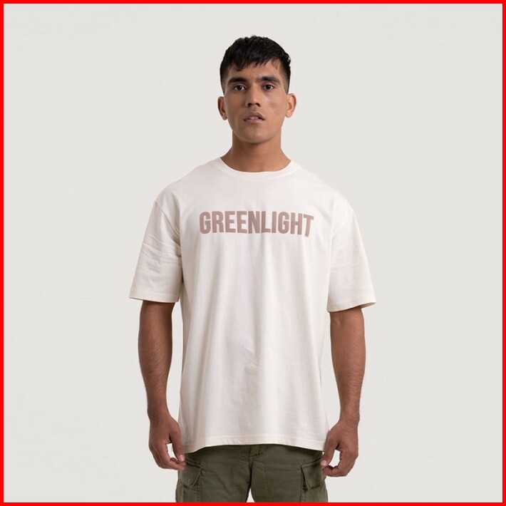 Greenlight Kaos Lengan Pendek Pria Slim Fit Katun Polos Logo Cream