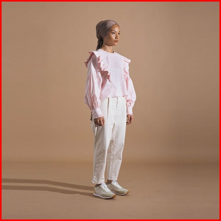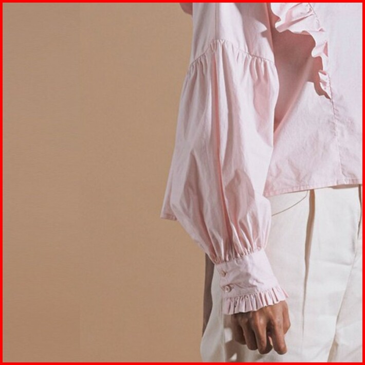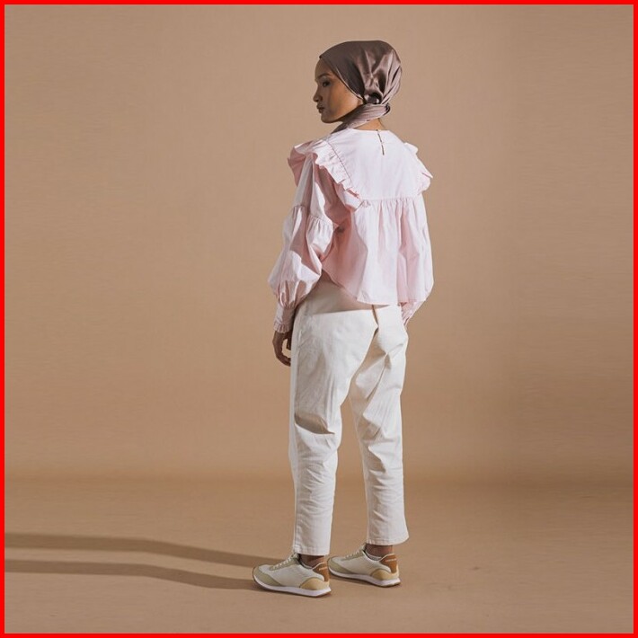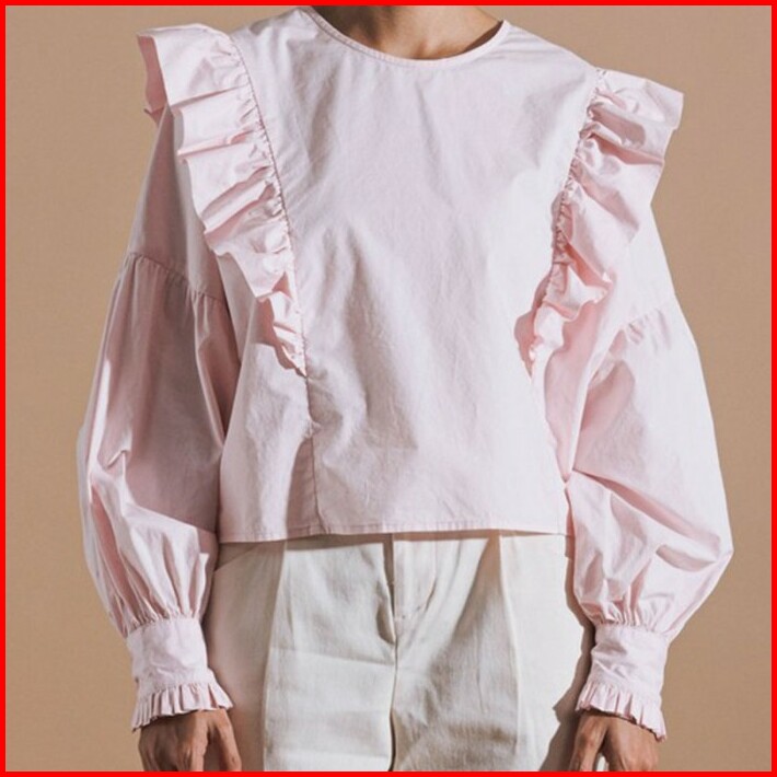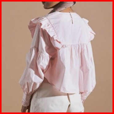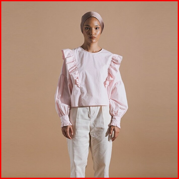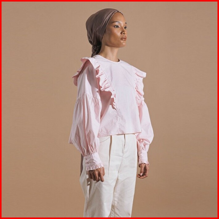 3second Kemeja Blouse Wanita Lengan Balon Ruffle Pink