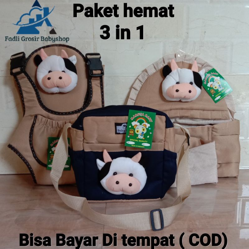 Paket Hemat ( 3 in 1 ) Tas Bayi Boneka Sapi Gendongan Bayi Boneka Sapi Dan Gendongan Bayi Depan Ransel