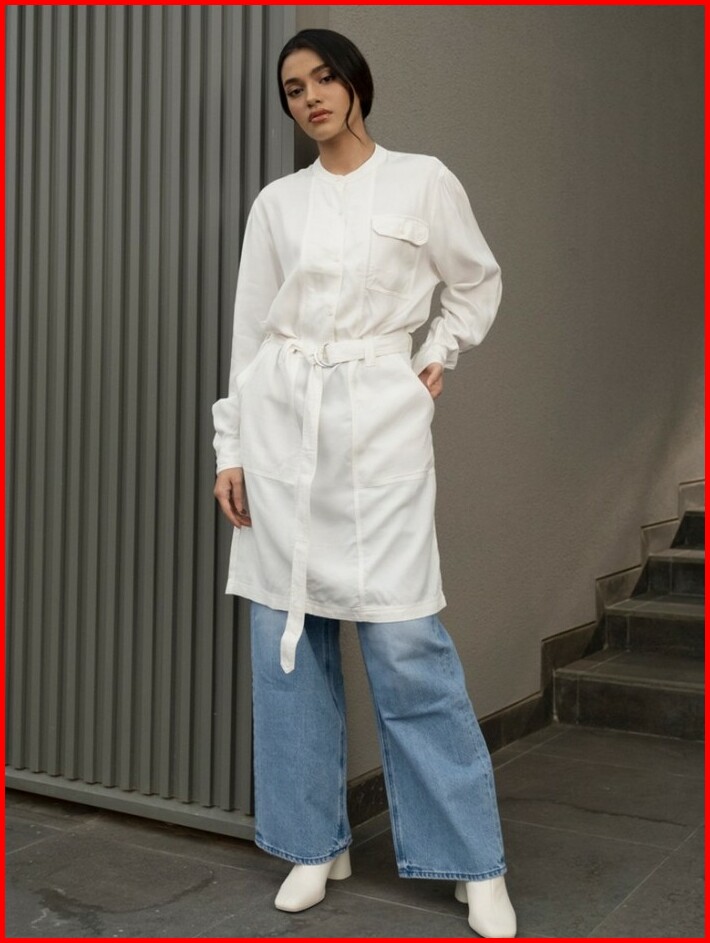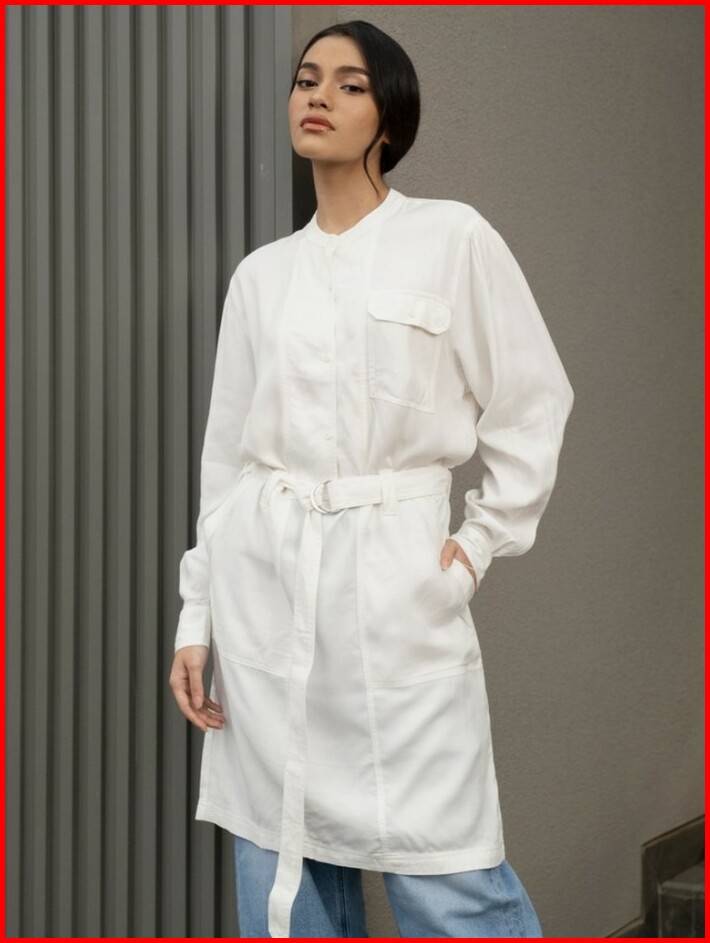 Greenlight Kemeja Dress Wanita Long Shirt Band Collar Putih