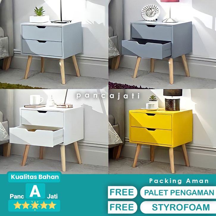 Meja Nakas Minimalis Bedside Table 2 Laci Putih