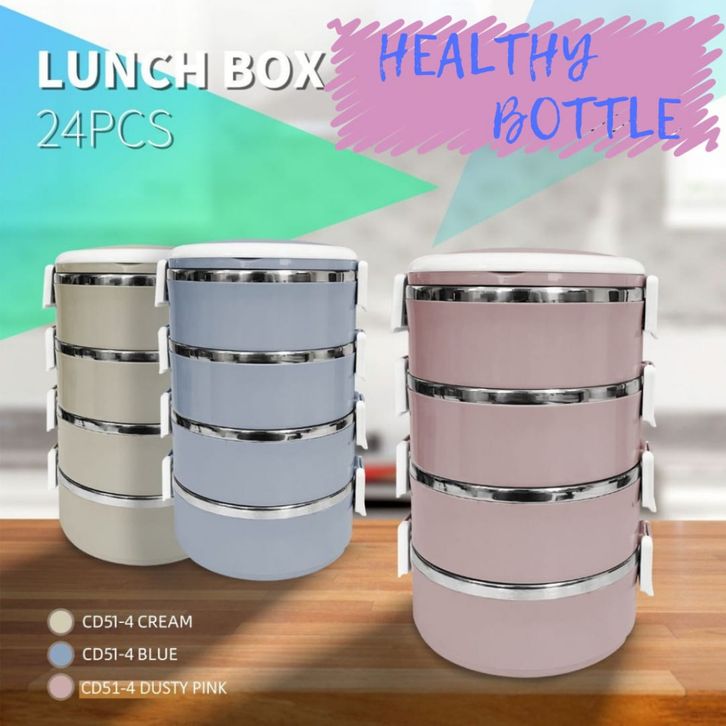 Rantang 4 Susun Polos Warna Warni Elegan Rantang Stainless Susun Kotak Bekal Makan Rantang Piknik Praktis Termurah