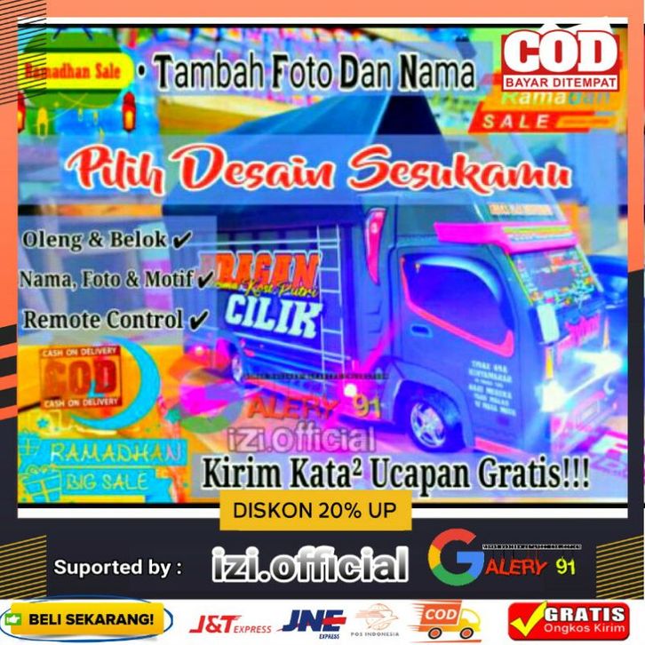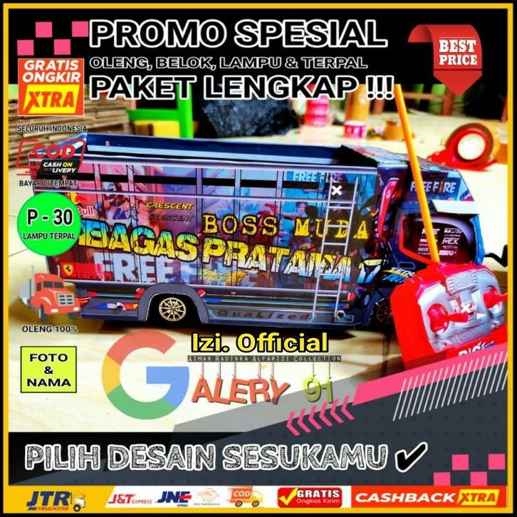 Truk Oleng Miniatur Truk Oleng Custom Nama Foto Remot Control RC Lampu Terpal