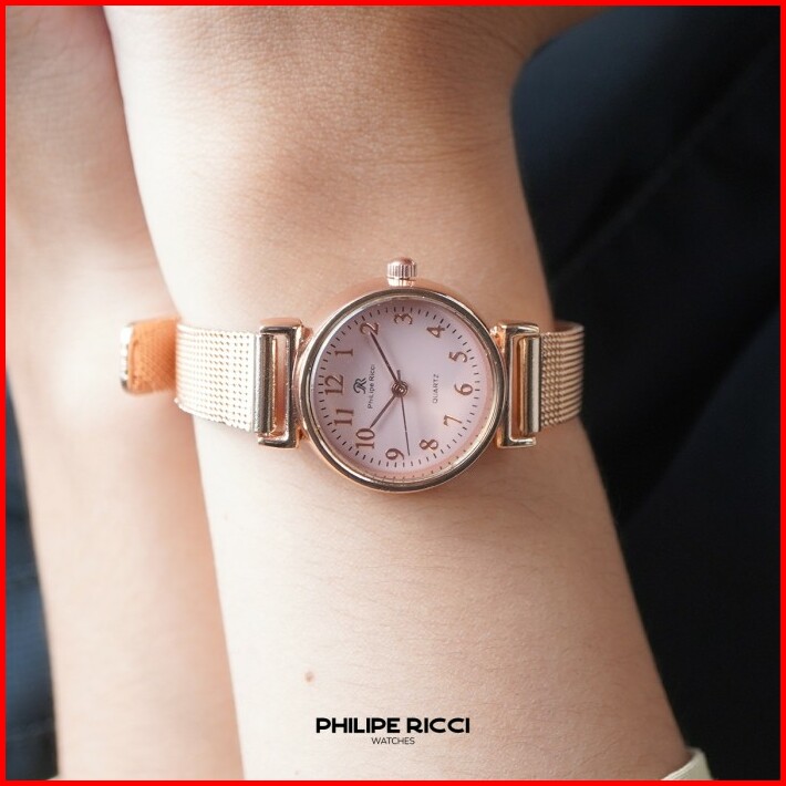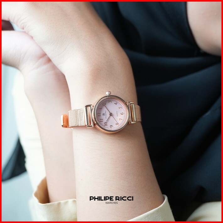 Philipe Ricci Jam Tangan Wanita Rantai Kecil Terbaru Gaya Korea Rose Imut 5837a Free Baterai