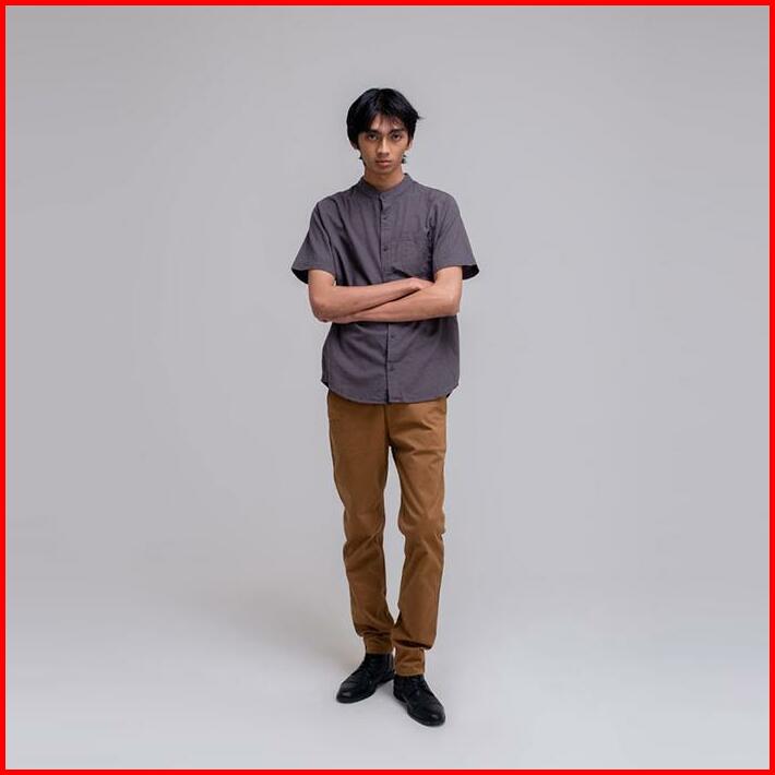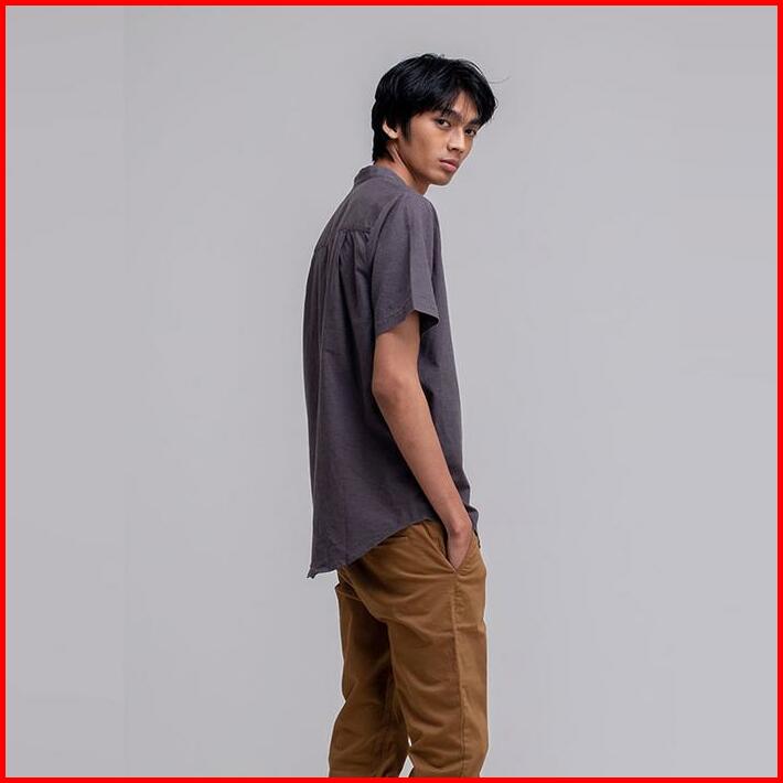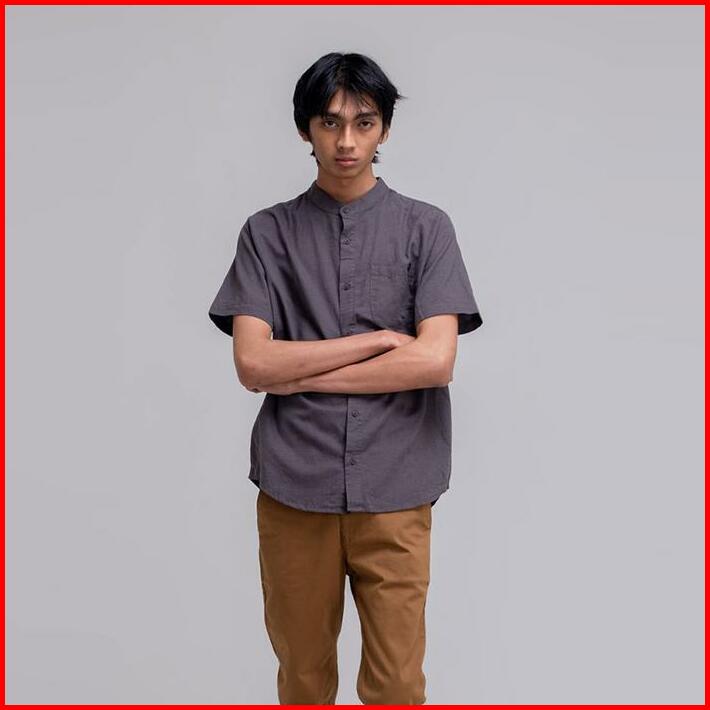 Famo Basic Shirt Linen With Stand-up Collar Short 170323 Pria Katun