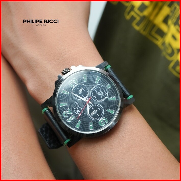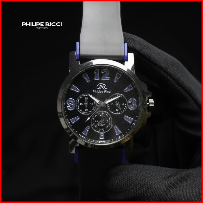 Philipe Ricci Jam Tangan Pria Karet Analog Hitam Terbaru Simple Quartz Pml8 Men Watches Free Box