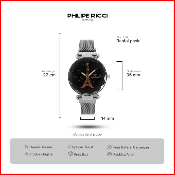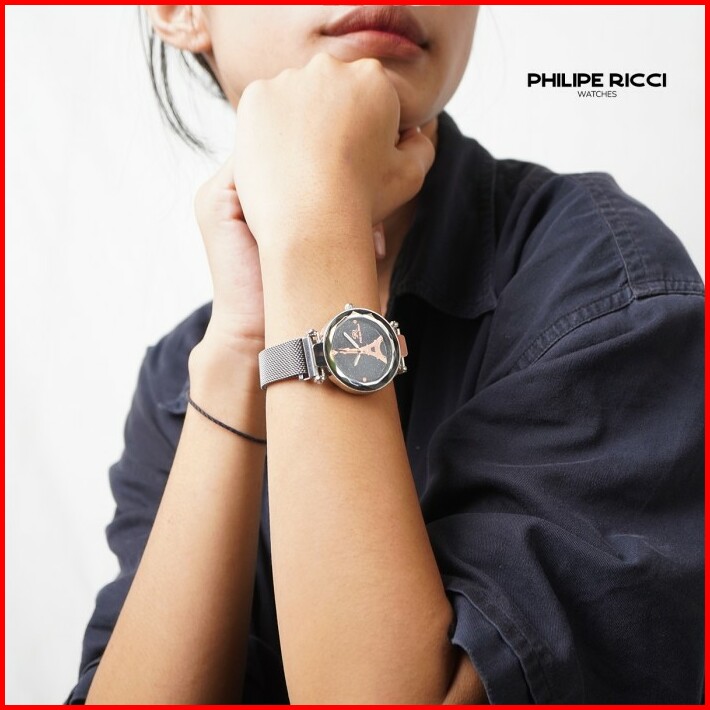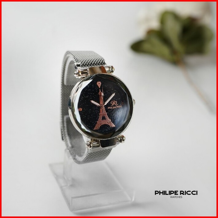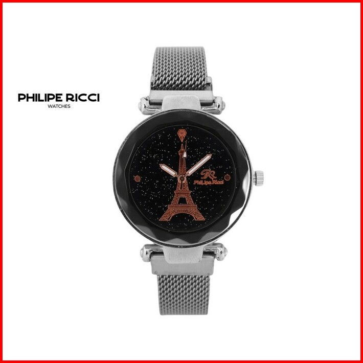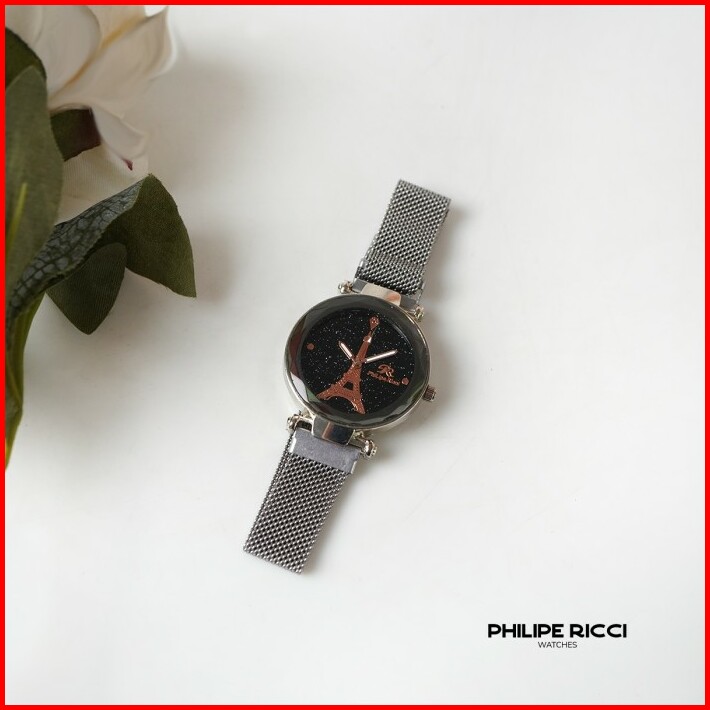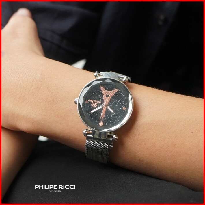 Philipe Ricci Jam Tangan Wanita Rantai Analog Silver Hitam Fashion Magnet Prs Women Watches Free Box