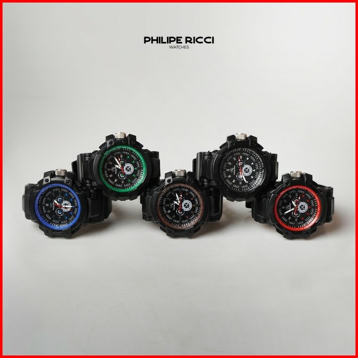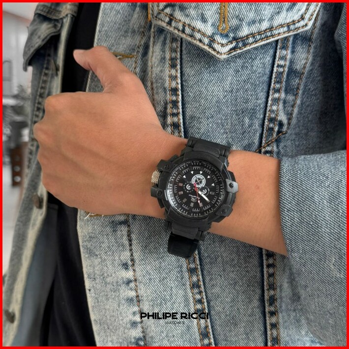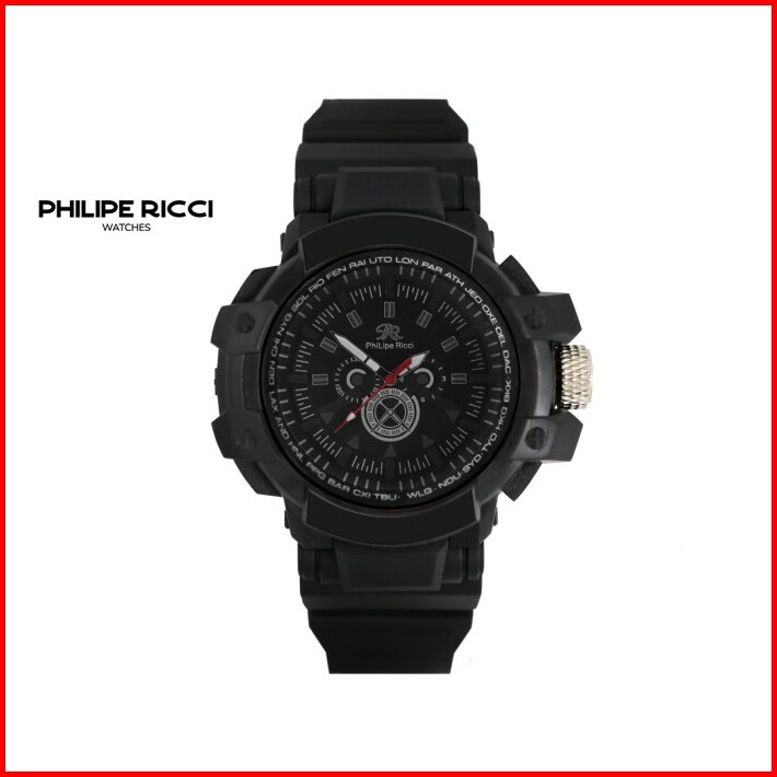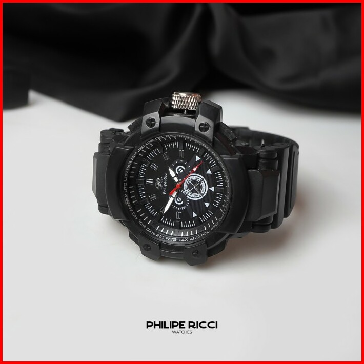Philipe Ricci Jam Tangan Pria Analog Karet Sport Terbaru Hitam Keren 1921k Men Watches Free Baterai