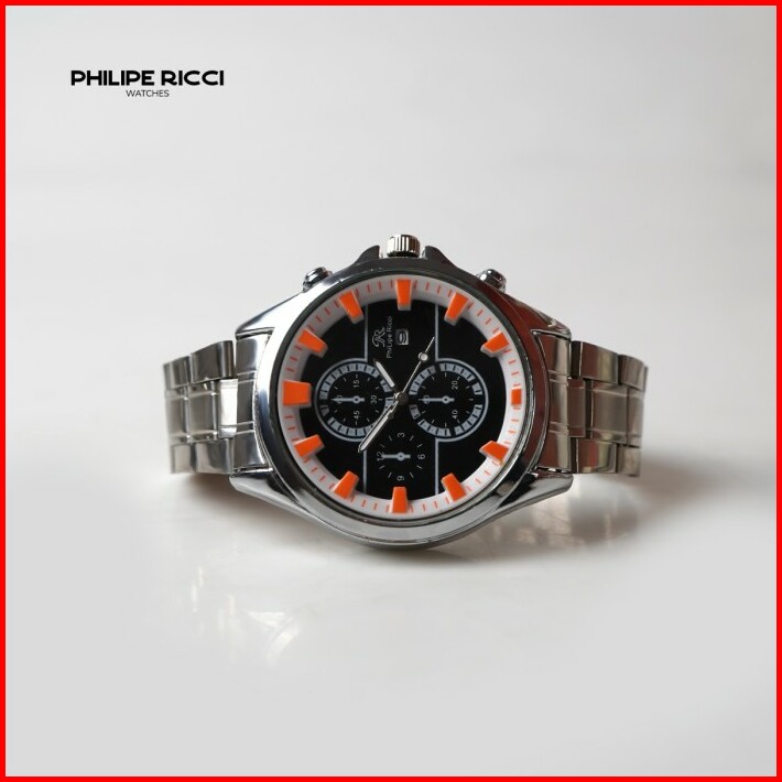 Philipe Ricci Jam Tangan Pria Rantai Hitam Keren Ori 100 Terbaru Simple 5635 Men Watch Free Box