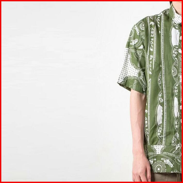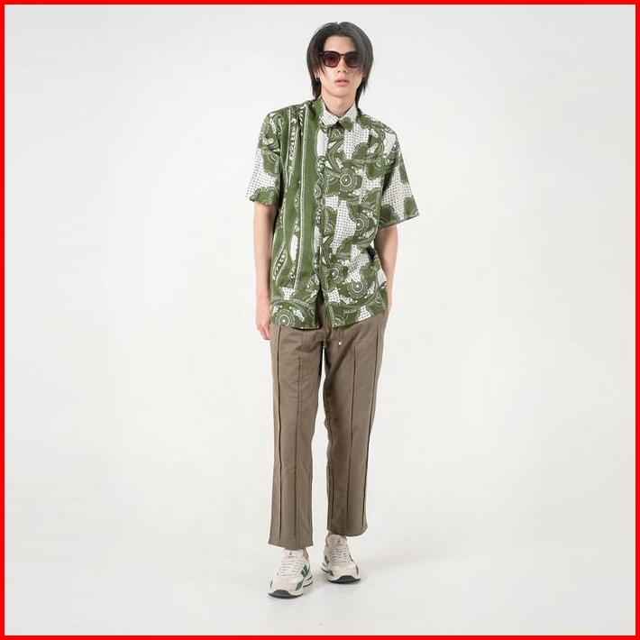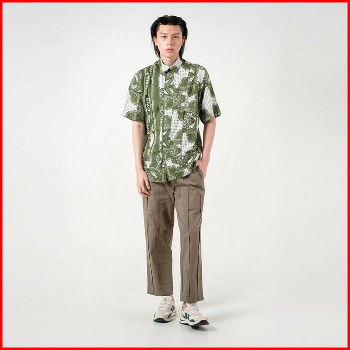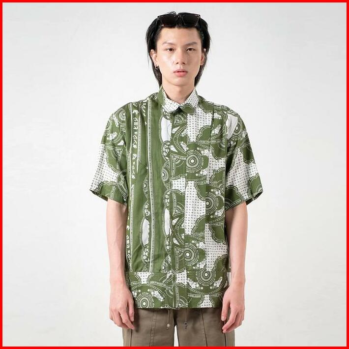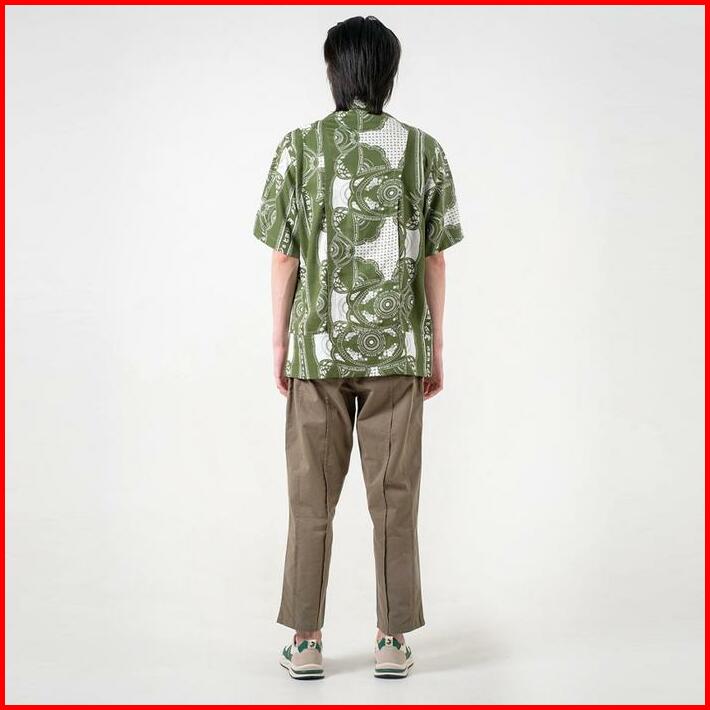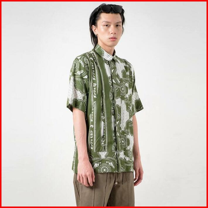 3second X Danjyo Hiyoji Peninsula Shirt Green 070423 Basic Motif Tangan Pendek