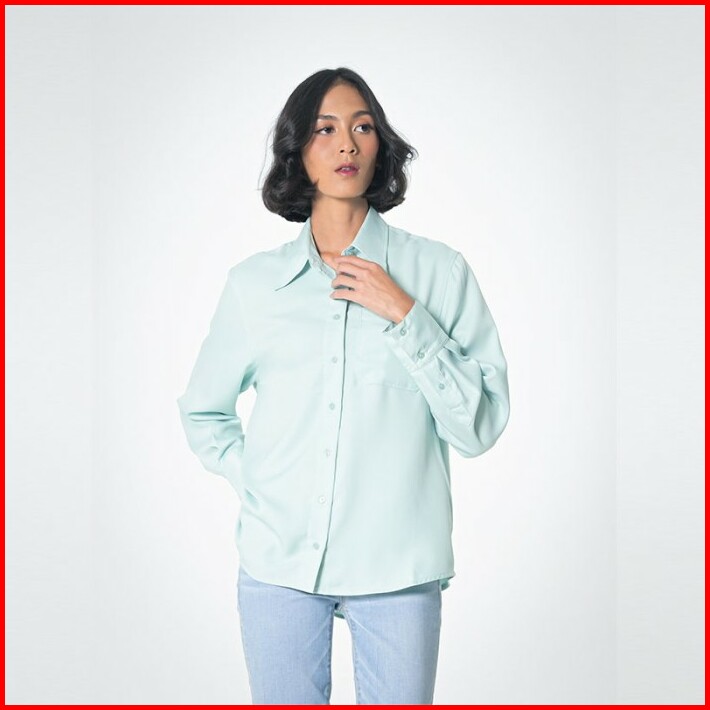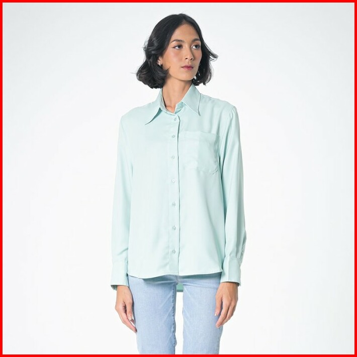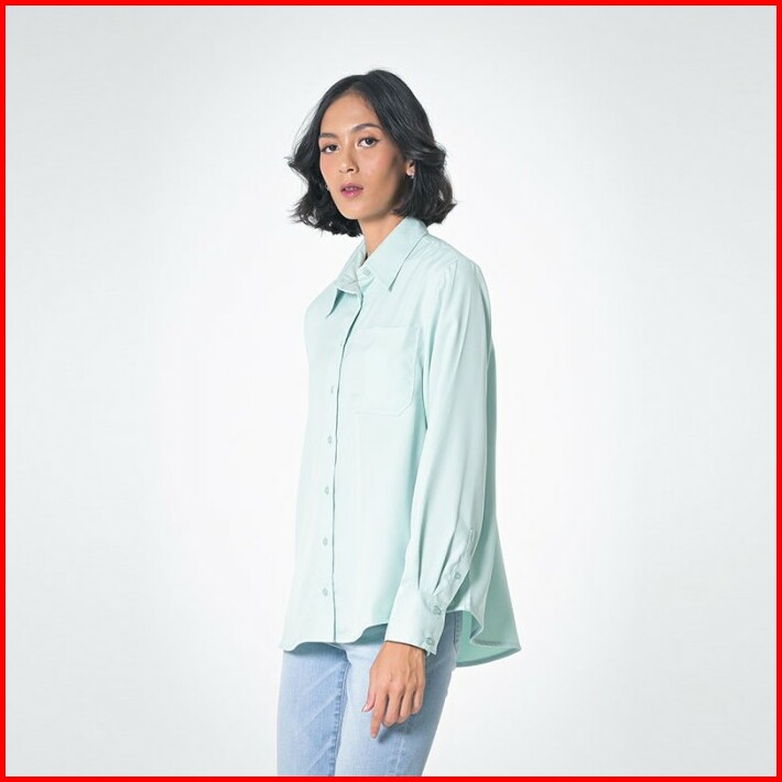 Greenlight Kemeja Lengan Panjang Basic Satin Wanita Hijau