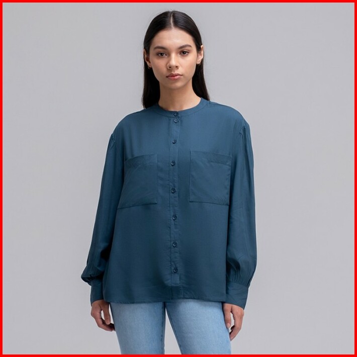 Greenlight Kemeja Blouse Rayon With Cuff Lengan Panjang Hijau