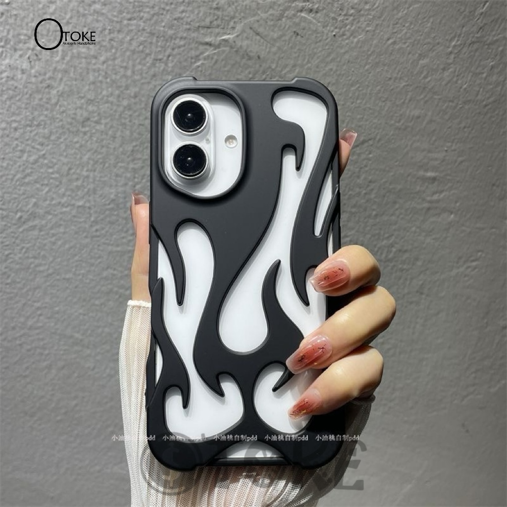 (FLASH SALE)New IMD Case Fire 3D Flame Pattern Silicone Phone Case Suitable for iPhone 16 15 14 13 12 11 Pro Max 14 15