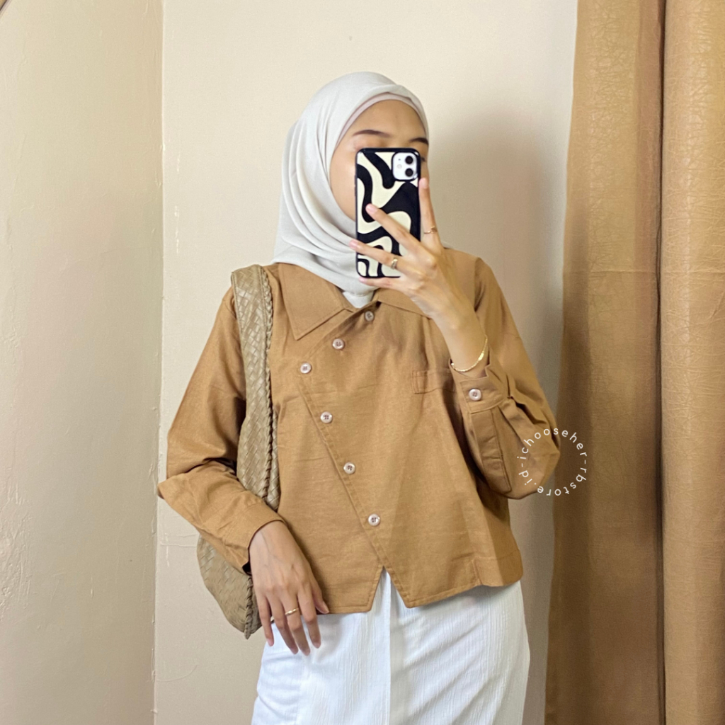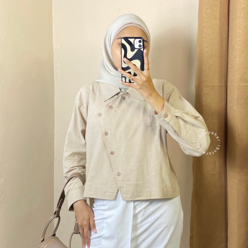 (Gratis Ongkir) Ivone Top Outer Linen Atasan Crop Wanita