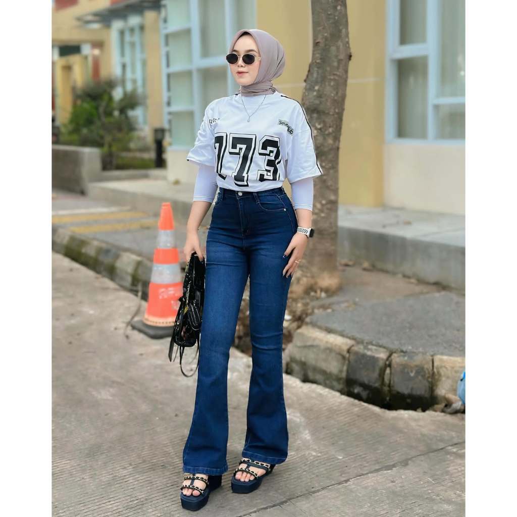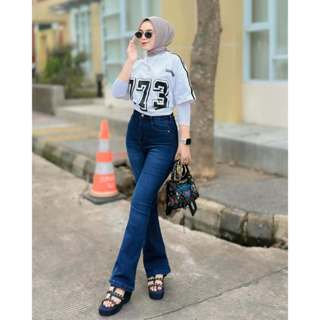 (Gratis Ongkir) HW Cutbray Jeans Wanita - Celana Cutbray Strecht Kekinian - Cutbray Flared- Streetch Premium Quality